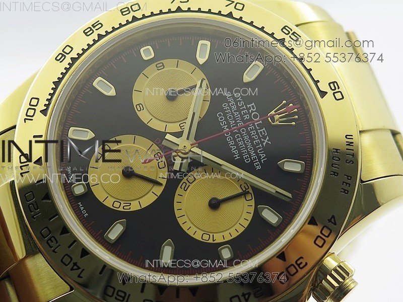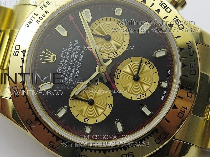 Daytona 116508 YG APSF Black Dial Gold Subdial Stick Markers On YG Bracelet Slim A7750