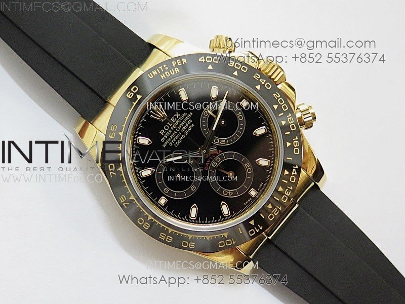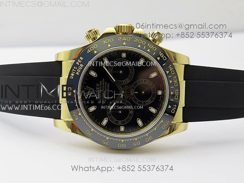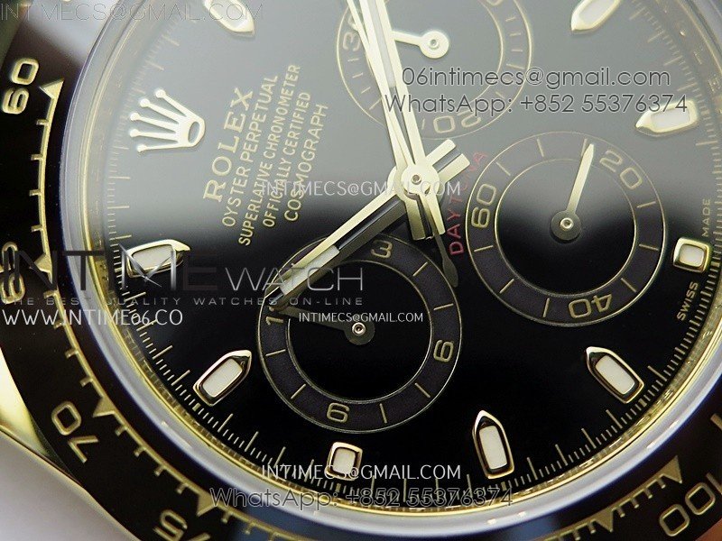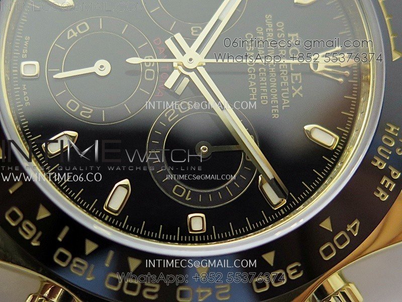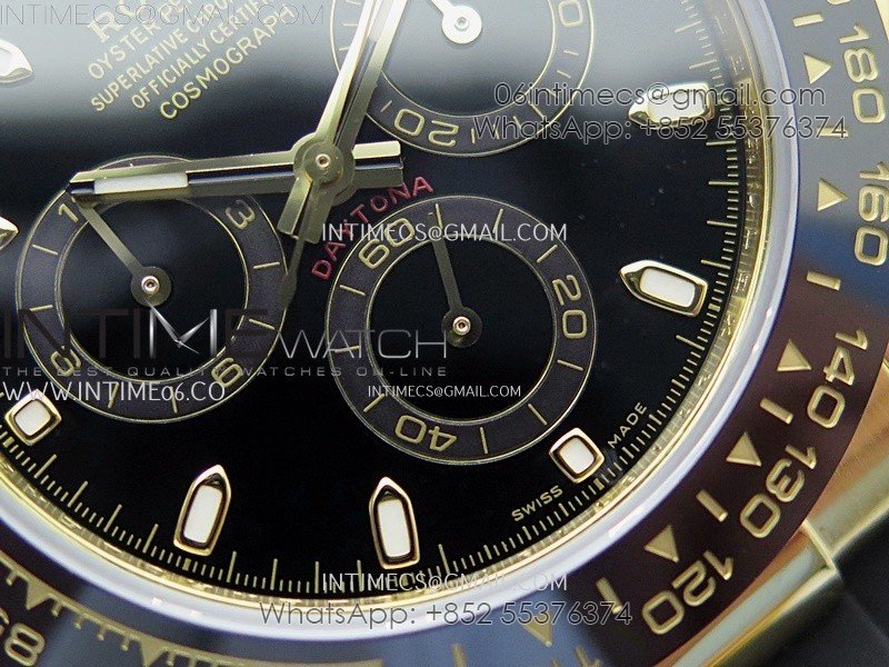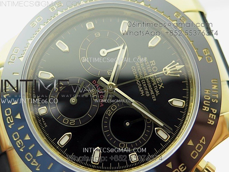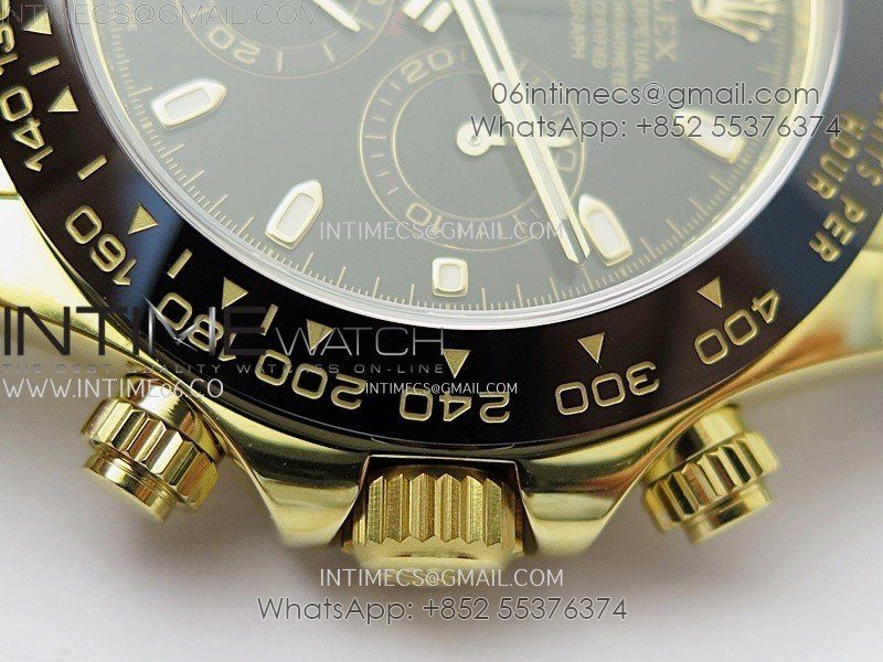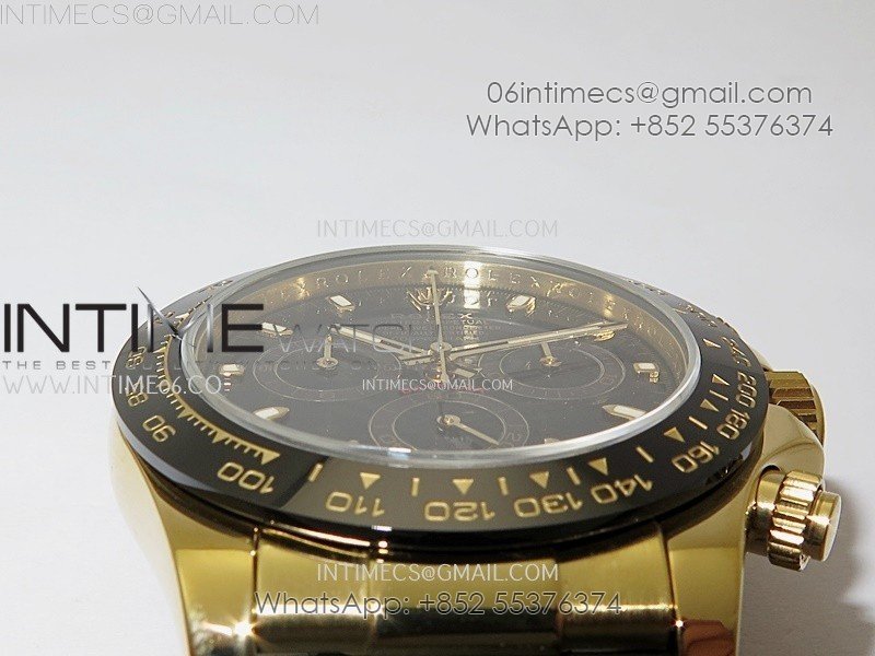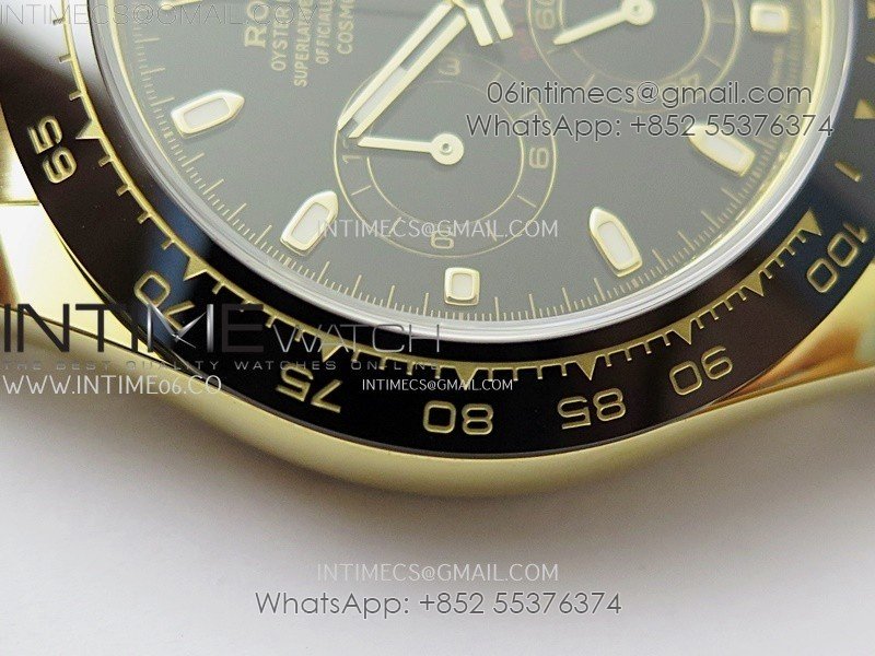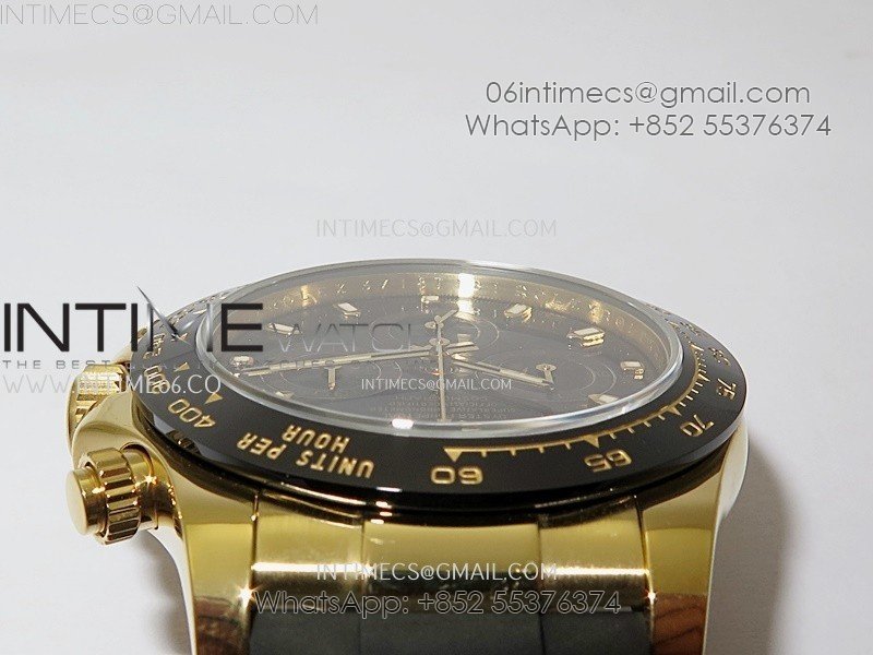 Bezel Black ceramic tachymeter bezel, real gold plated correct markers, same shape and depth as genuine bezel