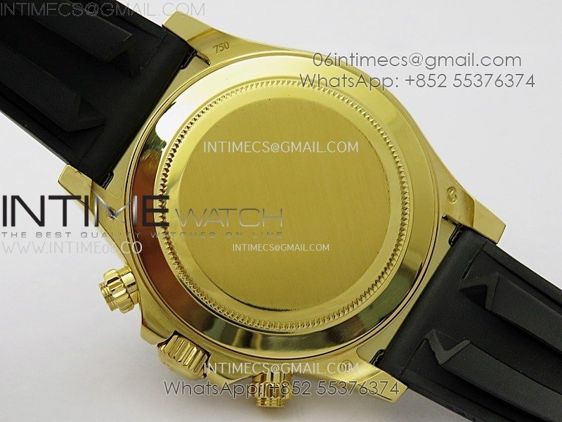 Case 18k yellow gold plated 1:1 replicated solid 904L stainless steel case, Cu-W metal to increase watch weight to match the genuine gold watch weight, almost same weight as genuine watch