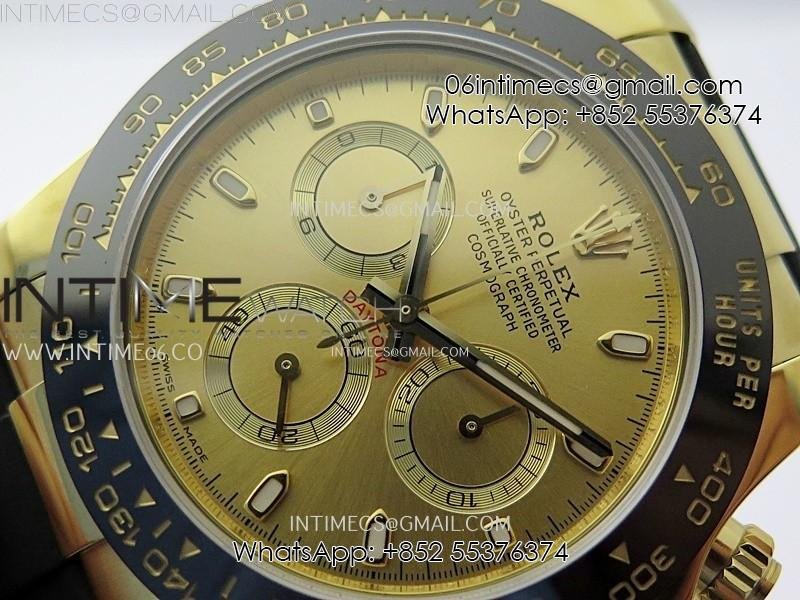 Bezel Black ceramic tachymeter bezel, real gold plated correct markers, same shape and depth as genuine bezel