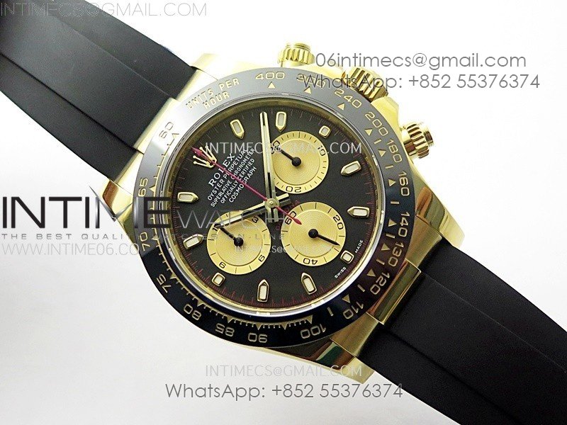 Daytona 116518 YG APSF 1:1 Best Edition Black Dial Gold Subdail on Oysterflex Rubber Strap SH4130