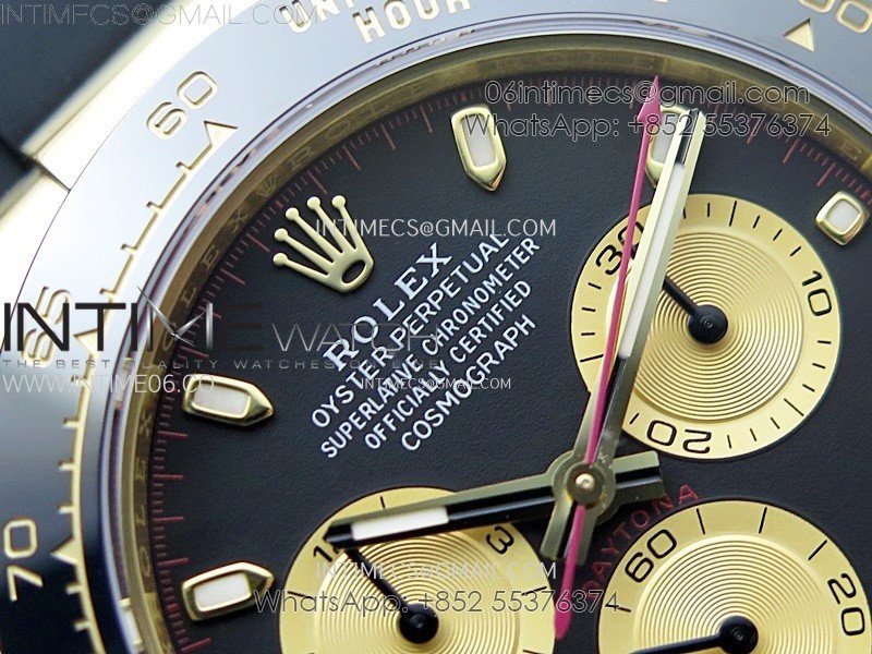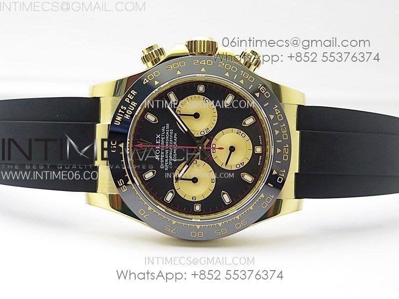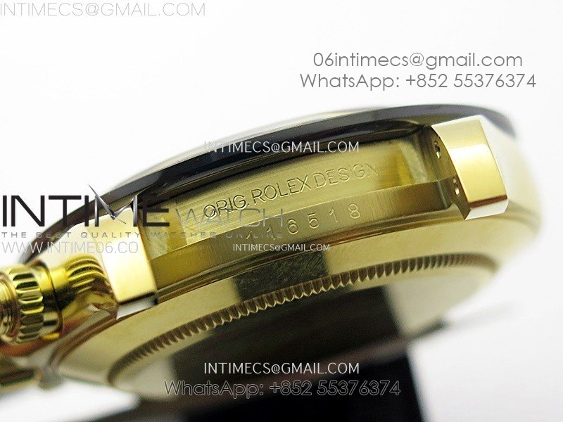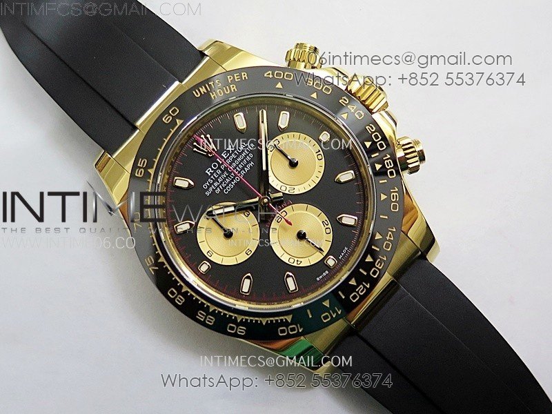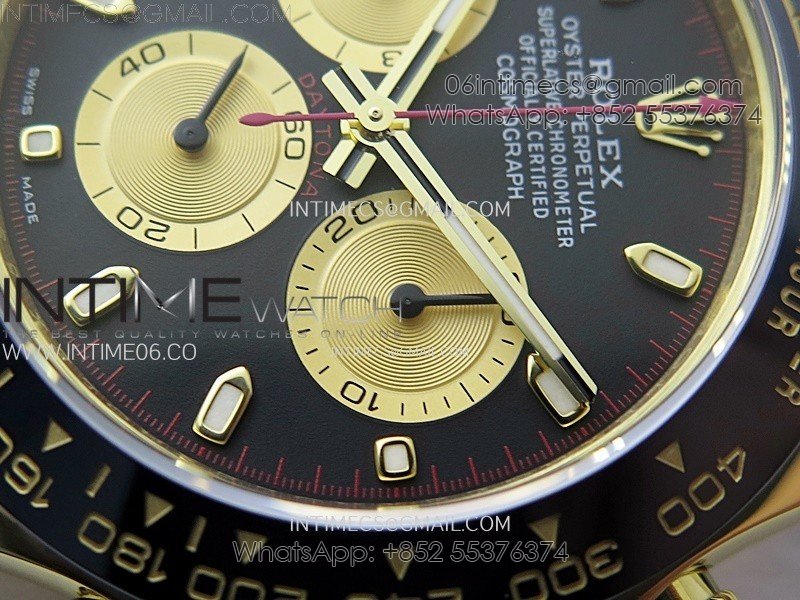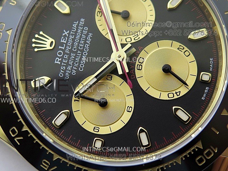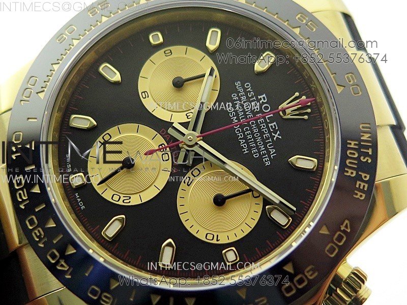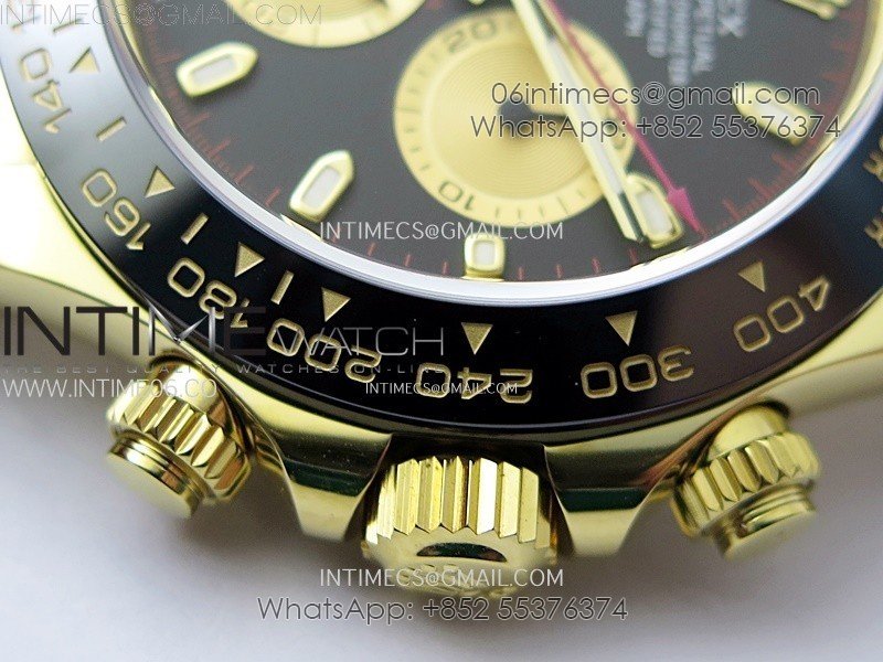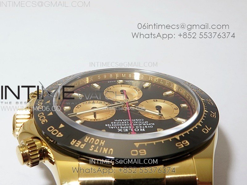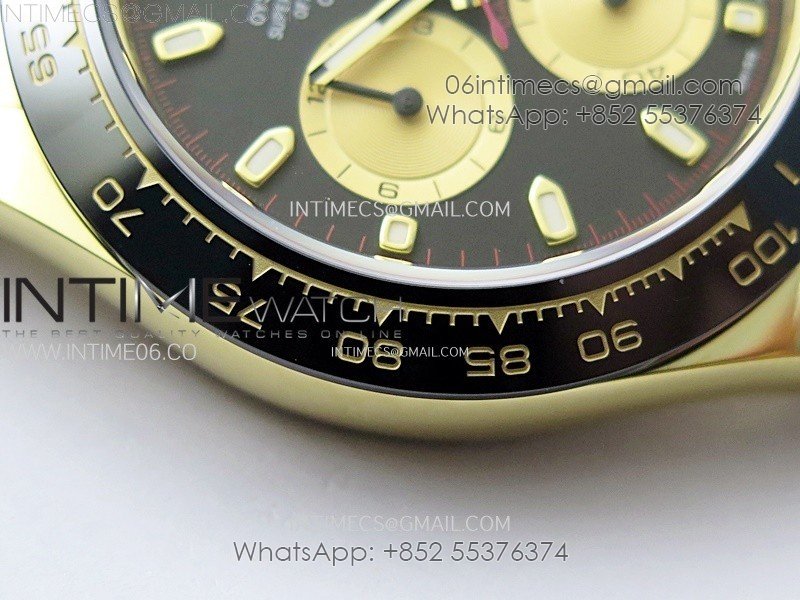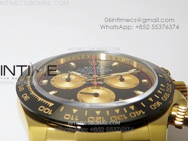 Bezel Black ceramic tachymeter bezel, real gold plated correct markers, same shape and depth as genuine bezel