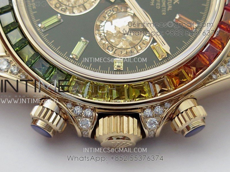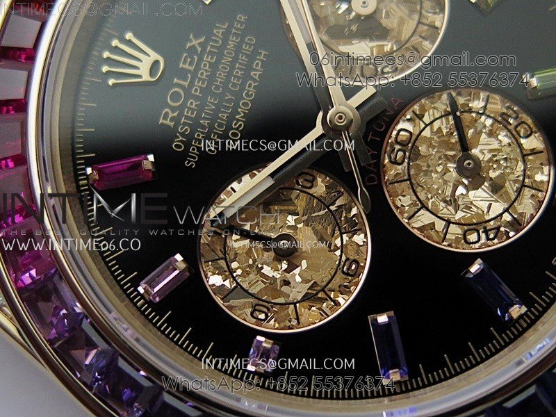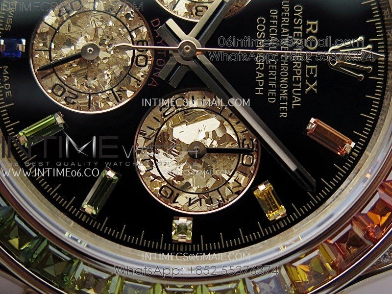 Crystal Scratch-proof sapphire crystal with semi-invisible crown etched at 6:00 position of the crystal (same as genuine and this is the first of its kind, one revolutionary breakthrough of the Rolex replicas)