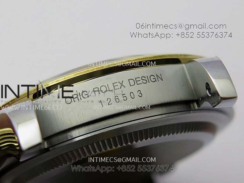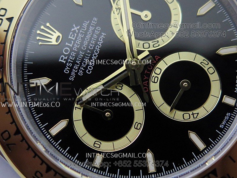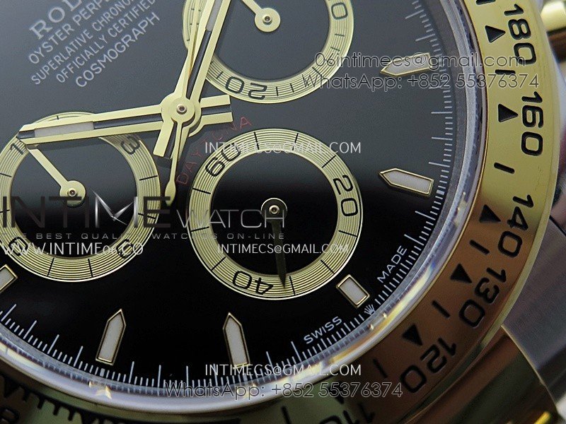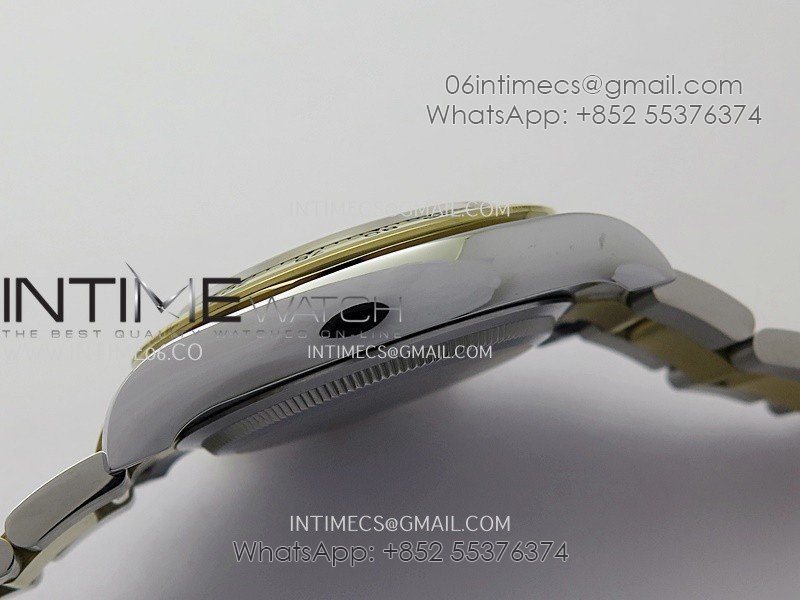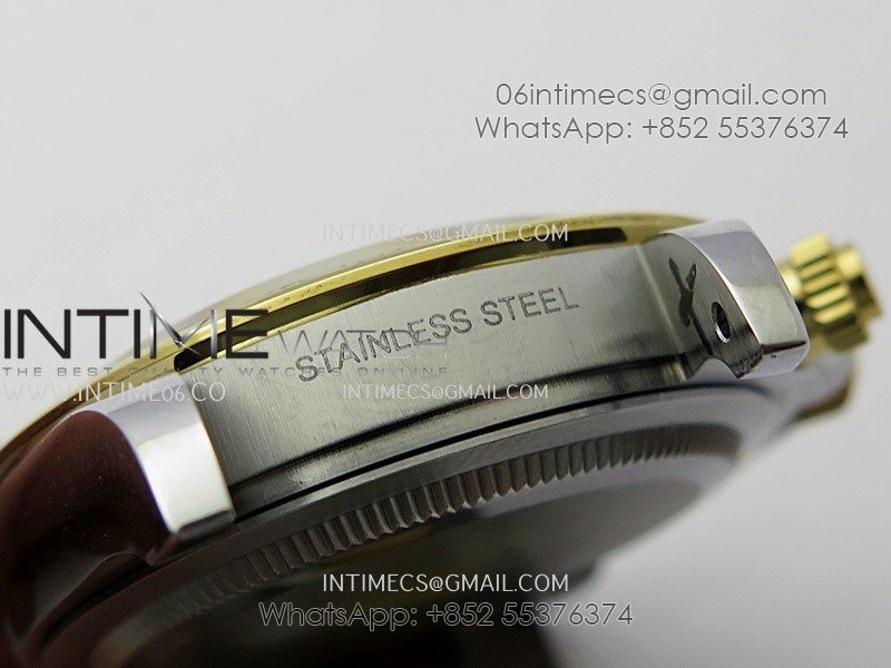 Bezel 18K yellow gold plated solid 904L stainless steel and Cu-W metal Bezel to increase watch weight to match the genuine gold watch weight
