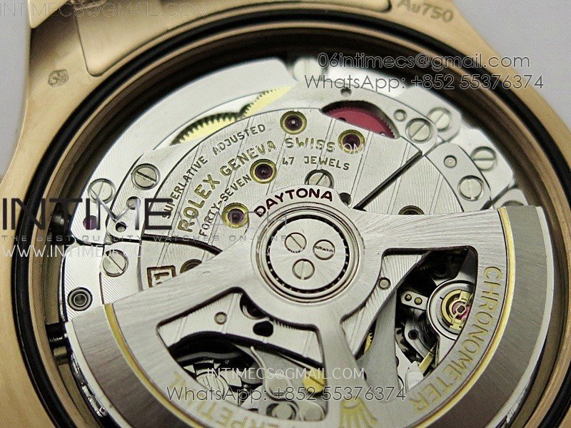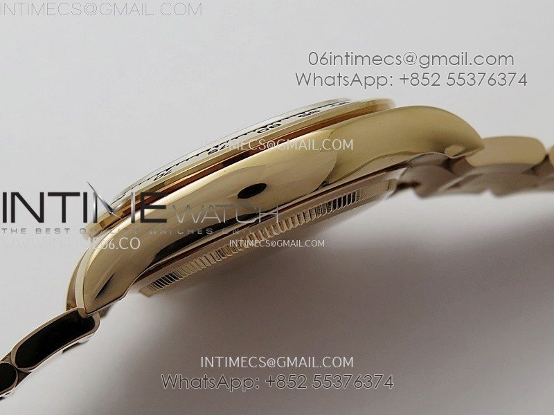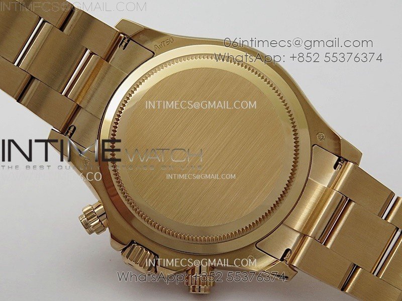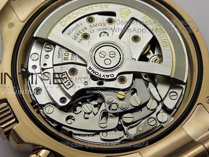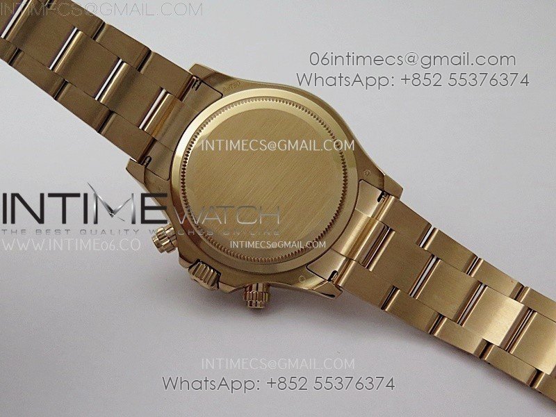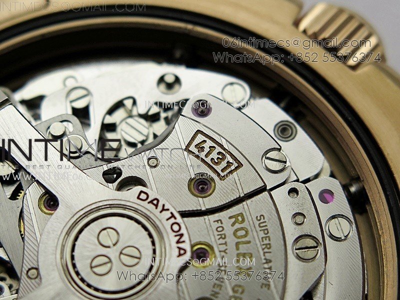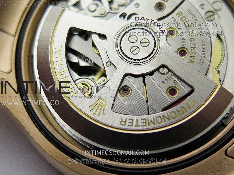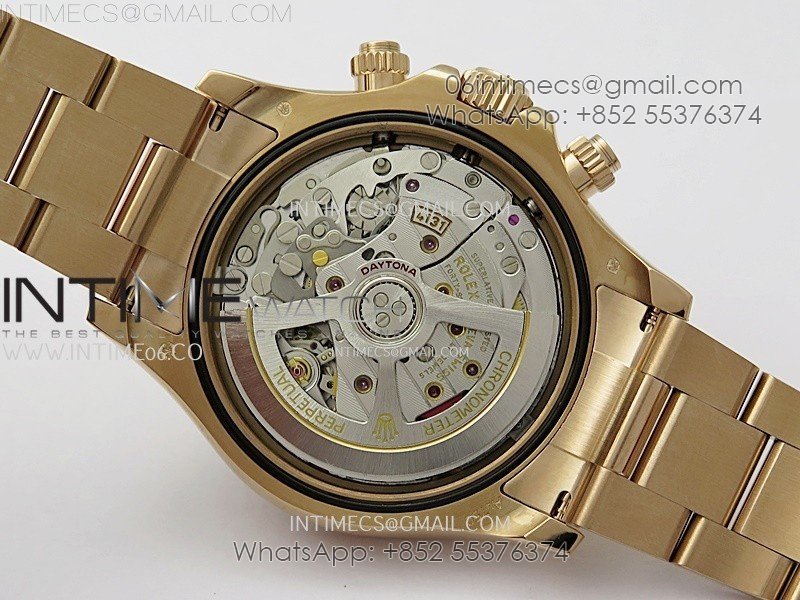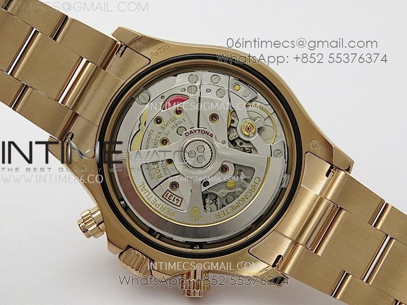 Case 18K rose gold plated 904L stainless steel case and Cu-W metal to increase watch weight to match the genuine gold watch weight, almost same weight as genuine watch