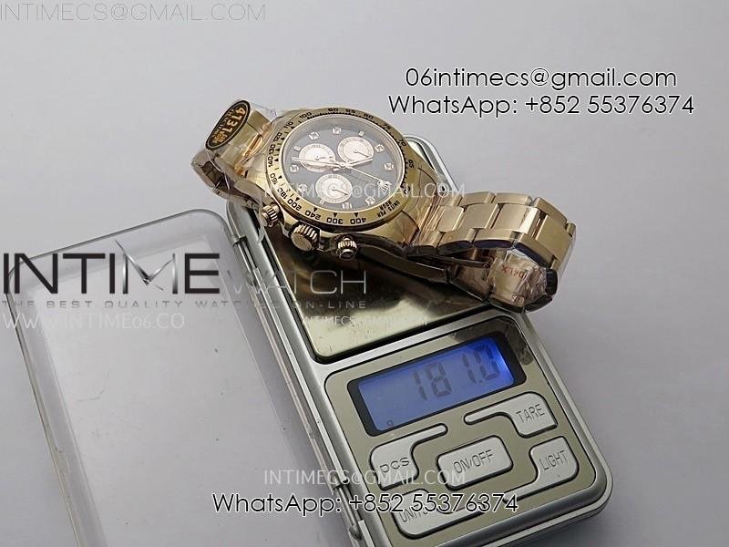 Case 18K rose gold plated 904L stainless steel case and Cu-W metal to increase watch weight to match the genuine gold watch weight, almost same weight as genuine watch
