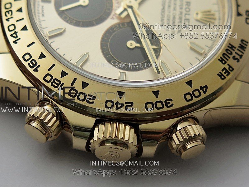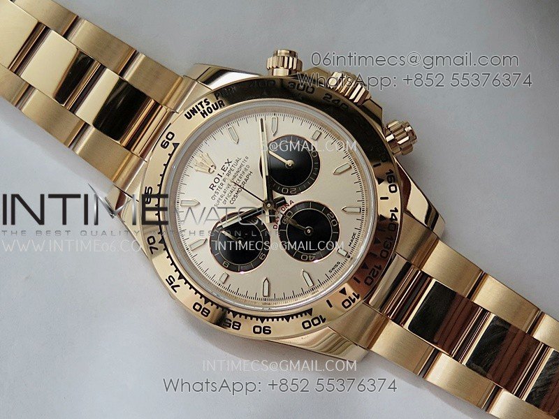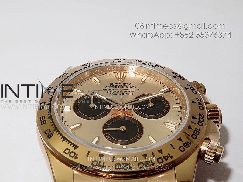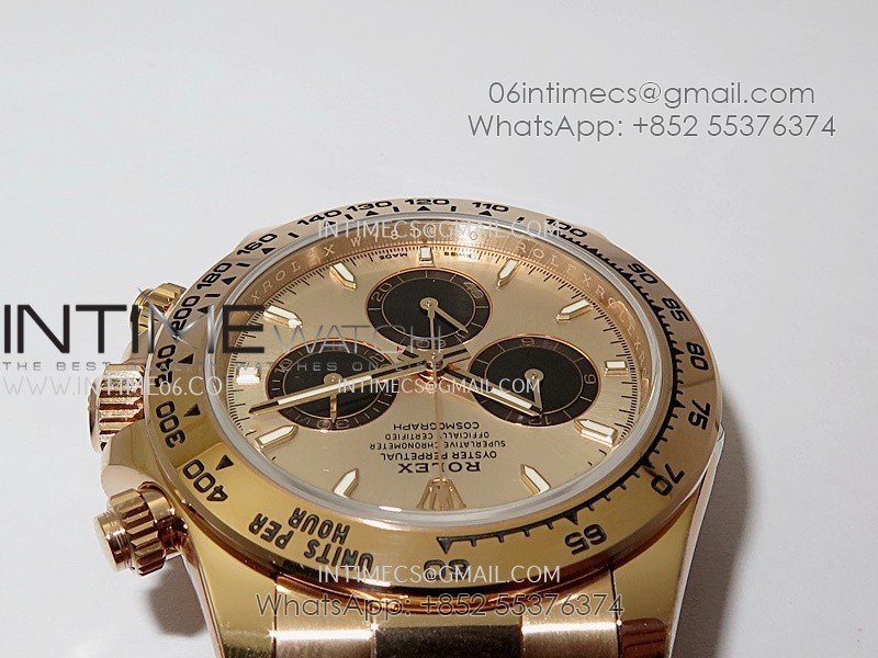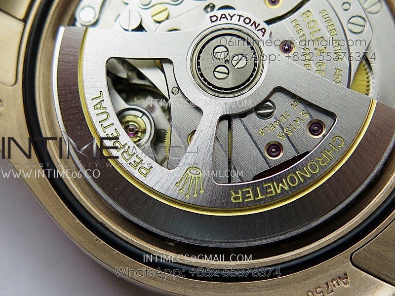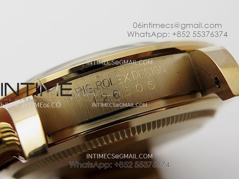 Bezel 1:1 replicated 18K rose gold plated solid 904L stainless steel and Cu-W metal bezel to increase watch weight to match the genuine gold watch weight