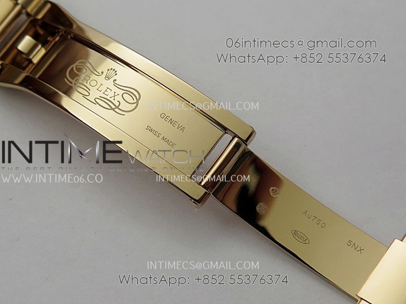 Strap 1:1 replicated 18K rose gold plated solid 904L stainless steel and Cu-W metal bracelet to increase watch weight to match the genuine gold watch weight