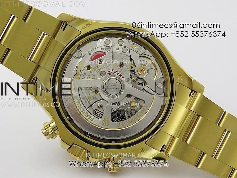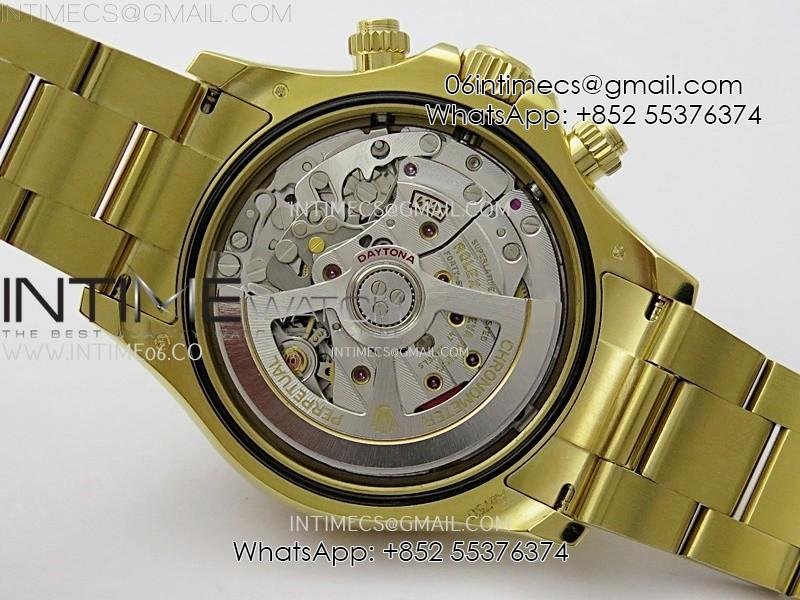 Case 18K yellow gold plated 904L stainless steel case and Cu-W metal to increase watch weight to match the genuine gold watch weight, almost same weight as genuine watch