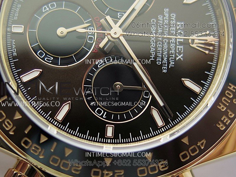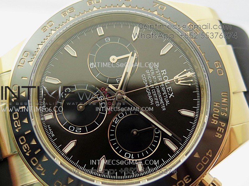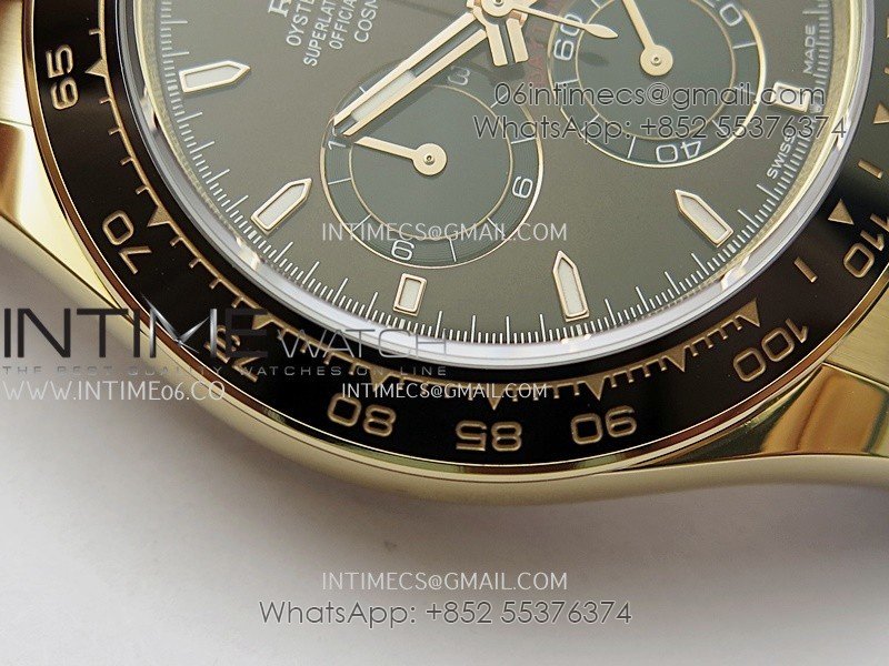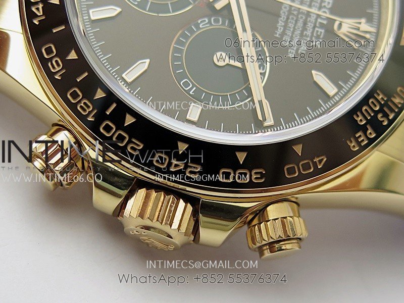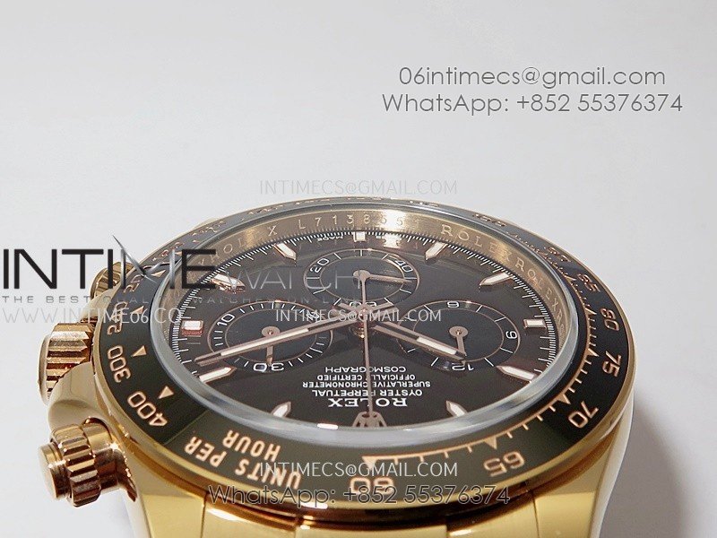 Bezel Black ceramic tachymeter bezel, real gold plated correct markers, same shape and depth as genuine bezel