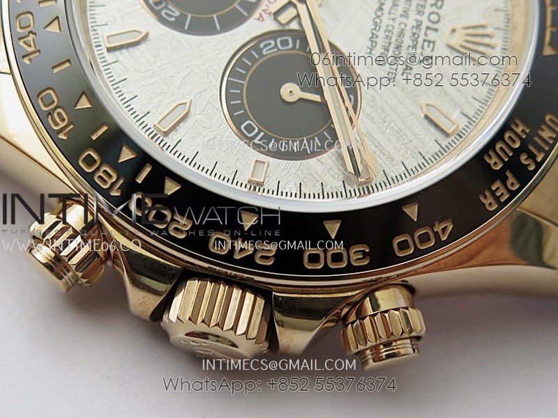 Bezel Black ceramic tachymeter bezel, real gold plated correct markers, same shape and depth as genuine bezel