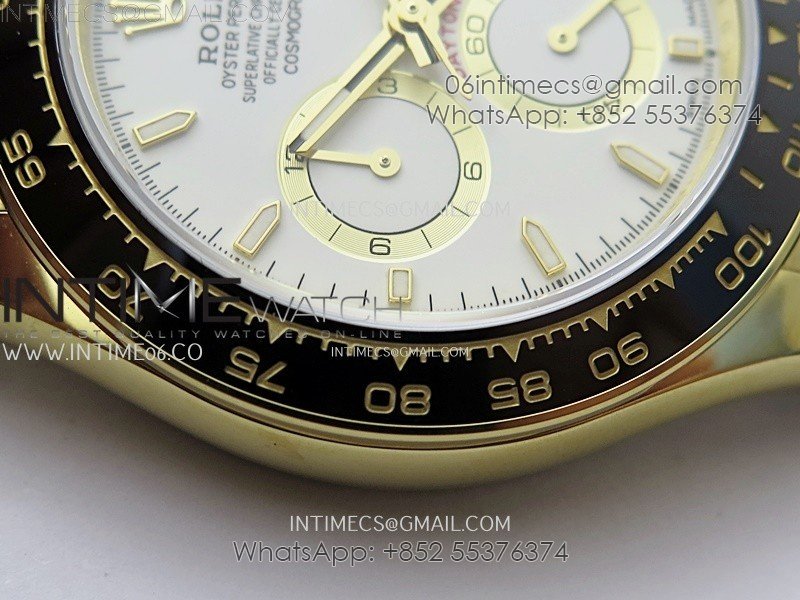 Bezel Black ceramic tachymeter bezel with 18k yellow gold plated steel wrapped
