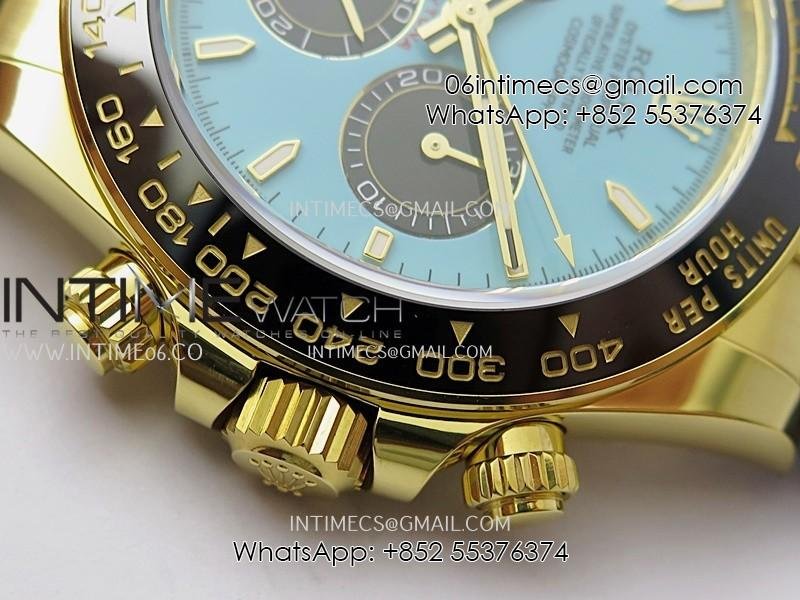 Bezel Black ceramic tachymeter bezel, real gold plated correct markers, same shape and depth as genuine bezel