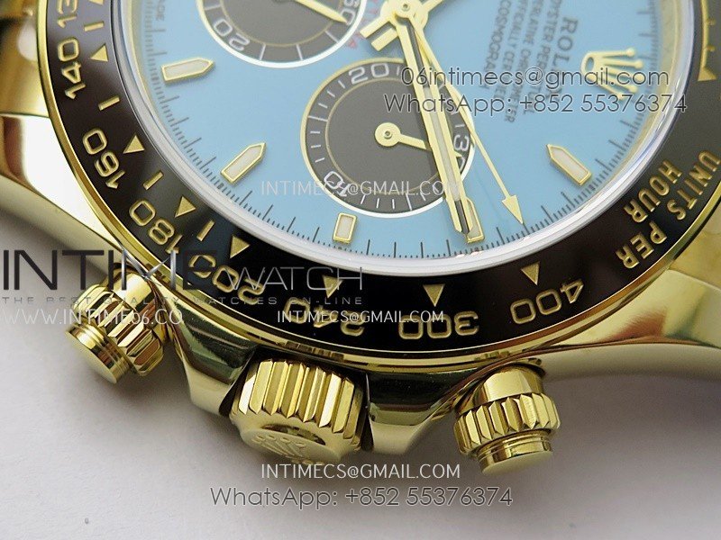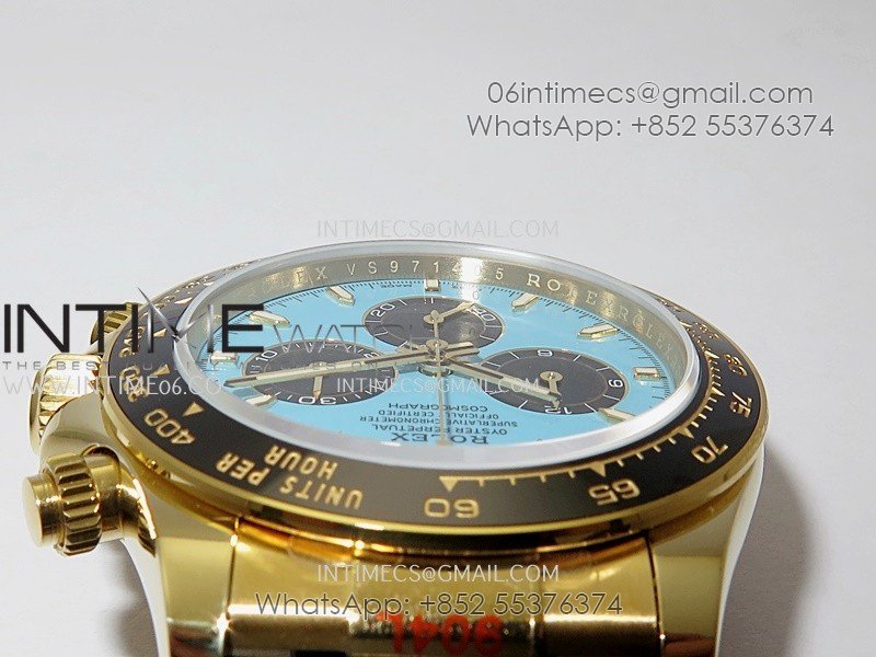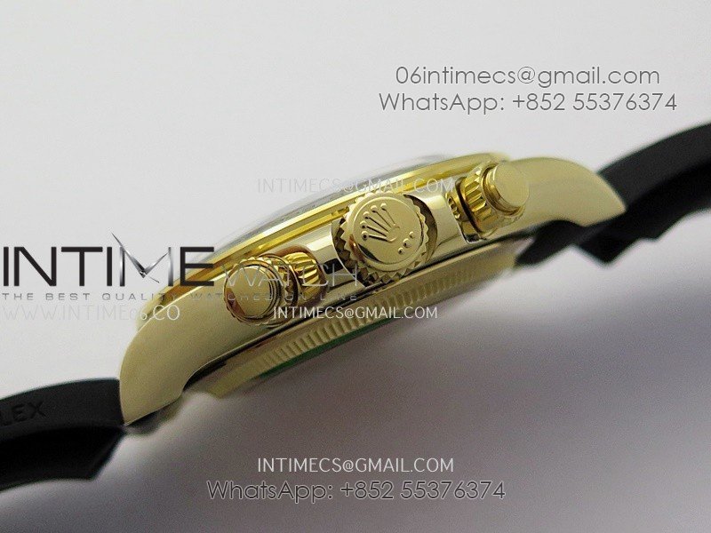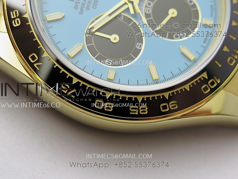 Bezel Black ceramic tachymeter bezel, real gold plated correct markers, same shape and depth as genuine bezel