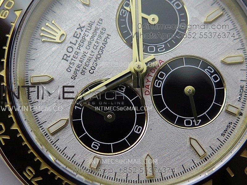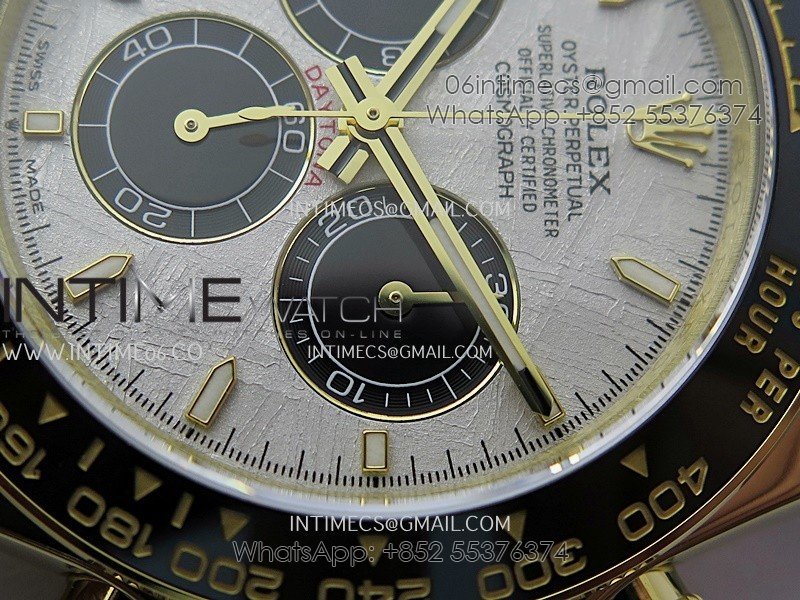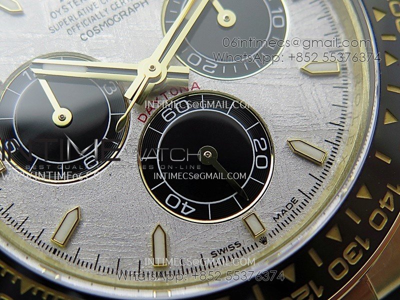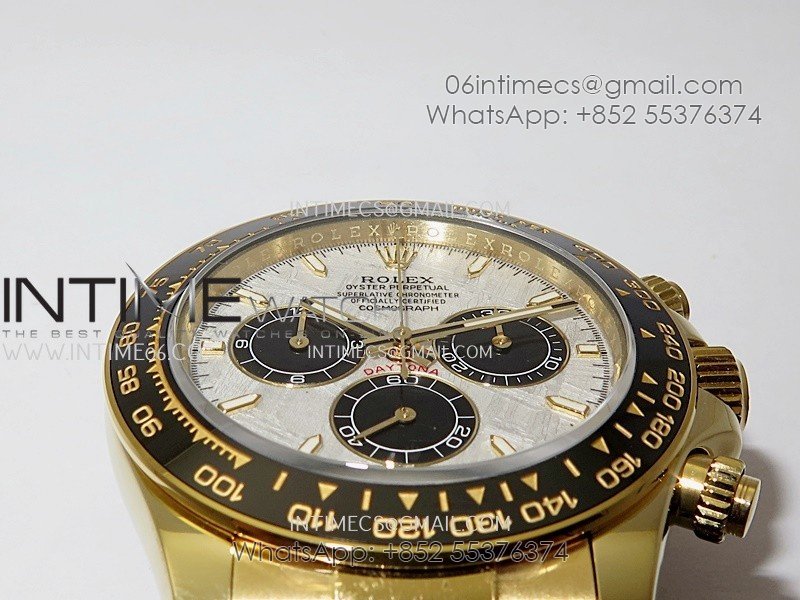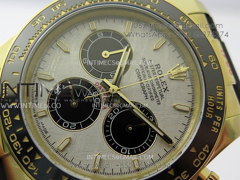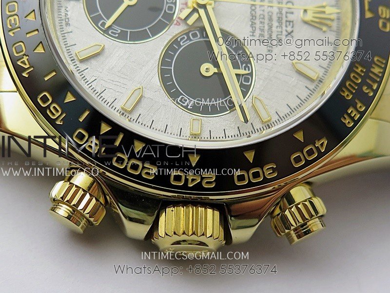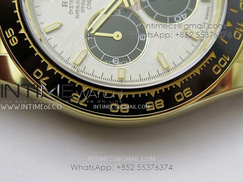 Bezel Black ceramic tachymeter bezel, real gold plated correct markers, same shape and depth as genuine bezel