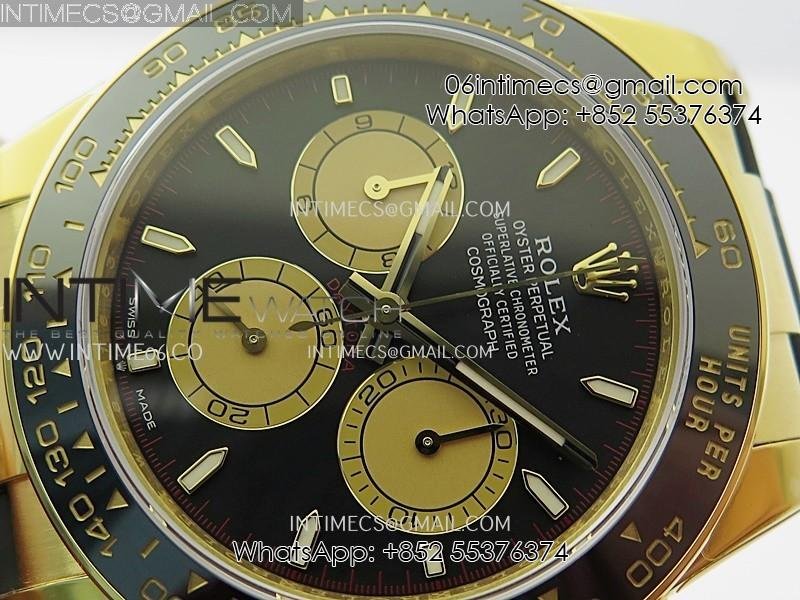 Bezel Black ceramic tachymeter bezel, real gold plated correct markers, same shape and depth as genuine bezel