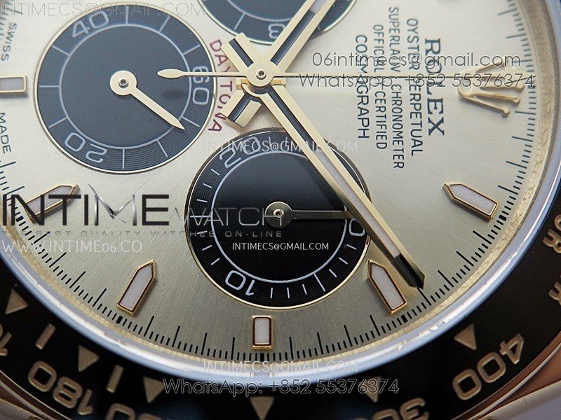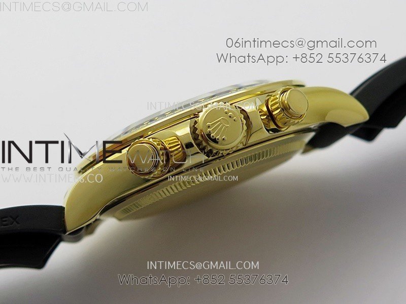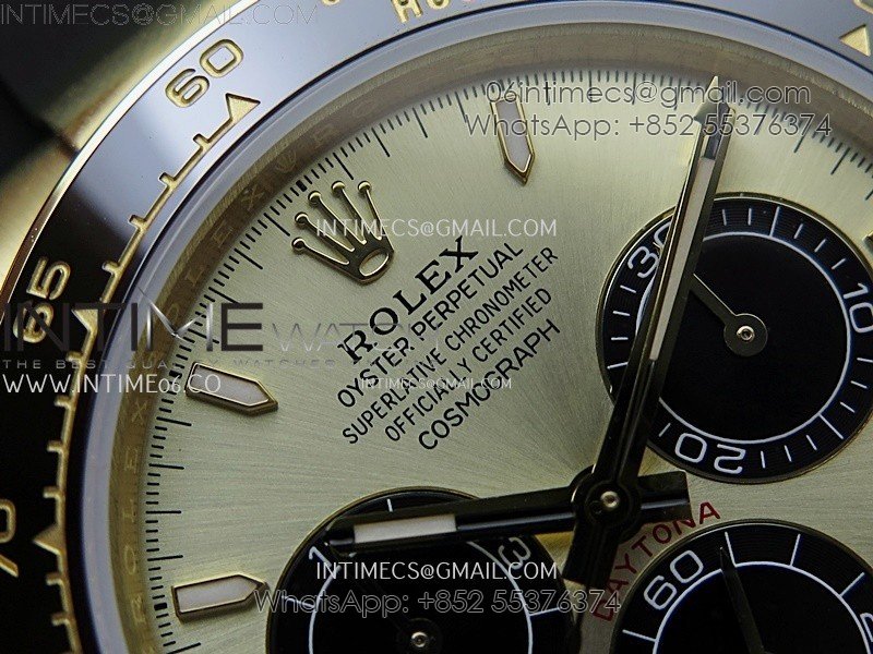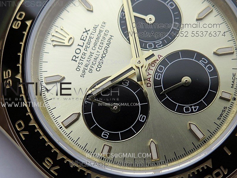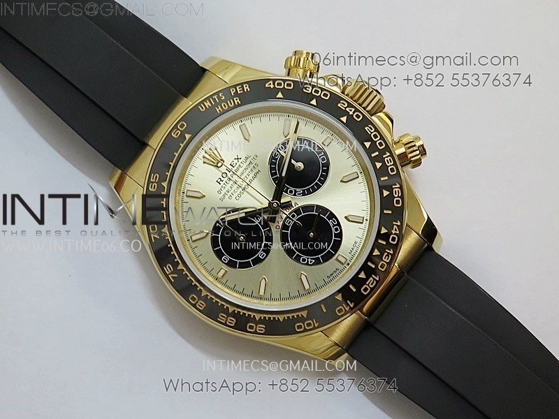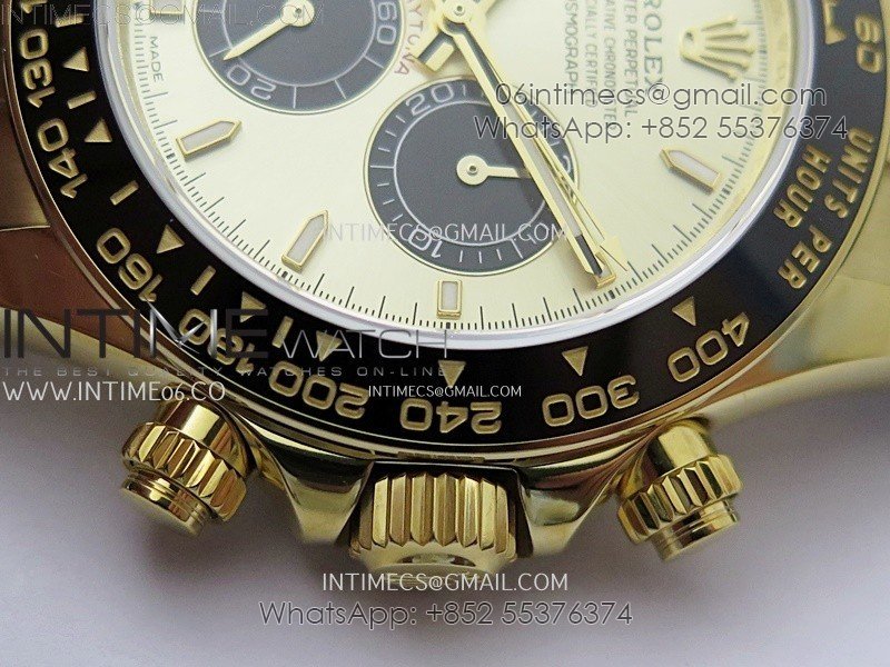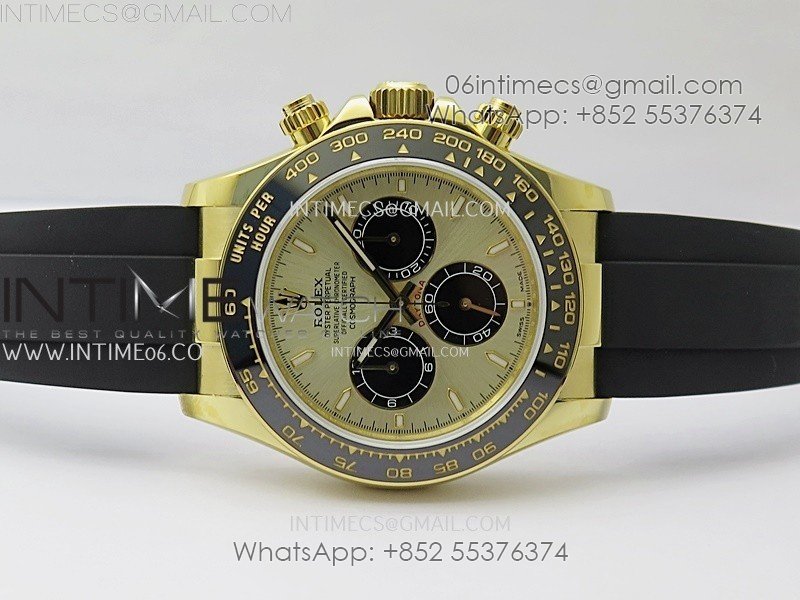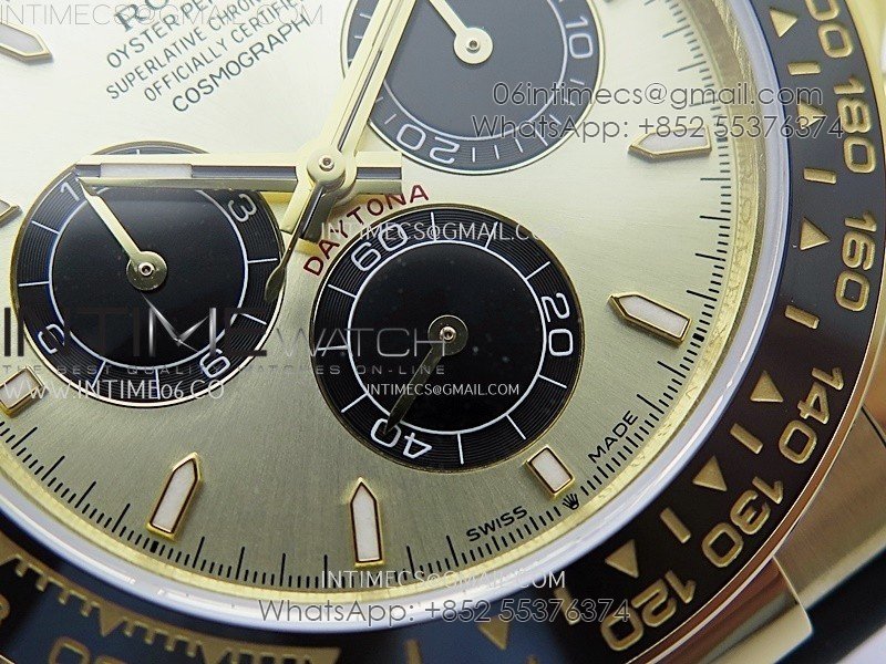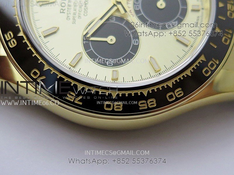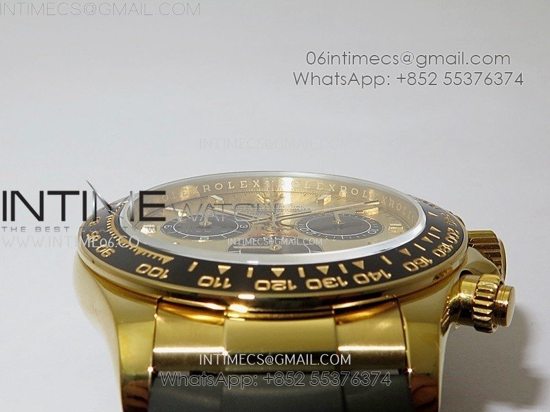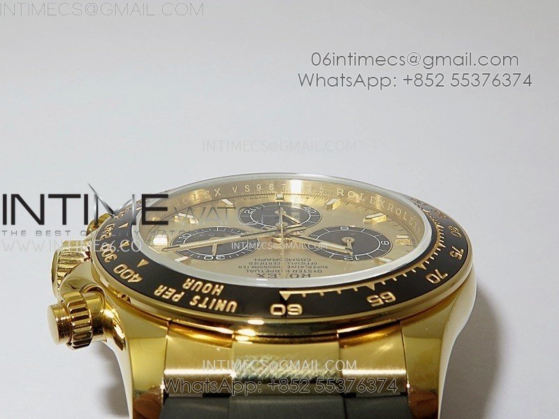 Bezel Black ceramic tachymeter bezel, real gold plated correct markers, same shape and depth as genuine bezel