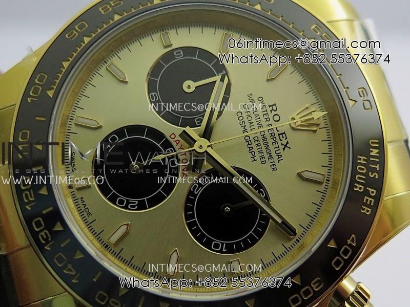 Case 18K yellow gold plated solid 904L stainless steel and Cu-W metal to increase watch case weight to match the genuine gold watch weight, almost same weight as genuine watch