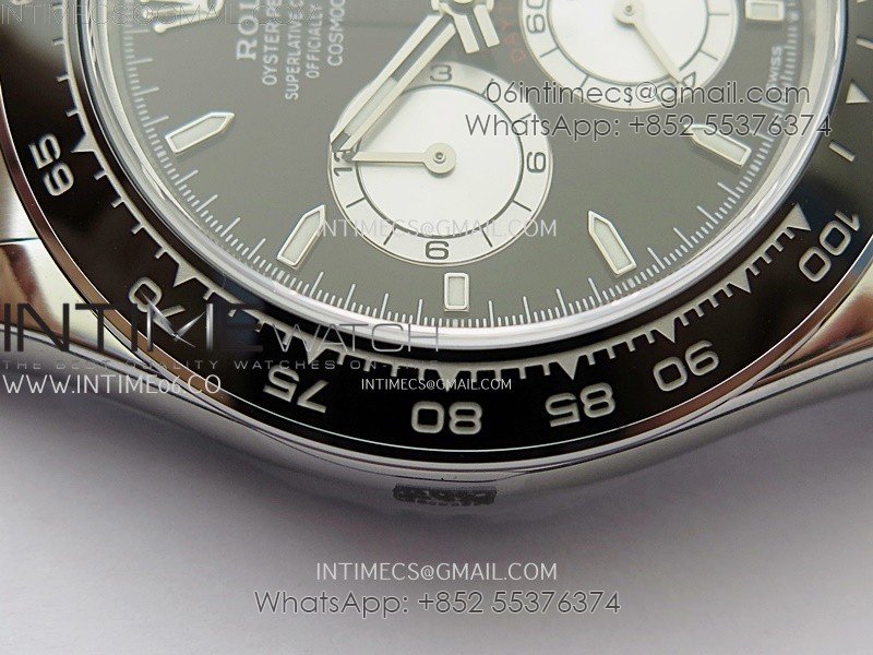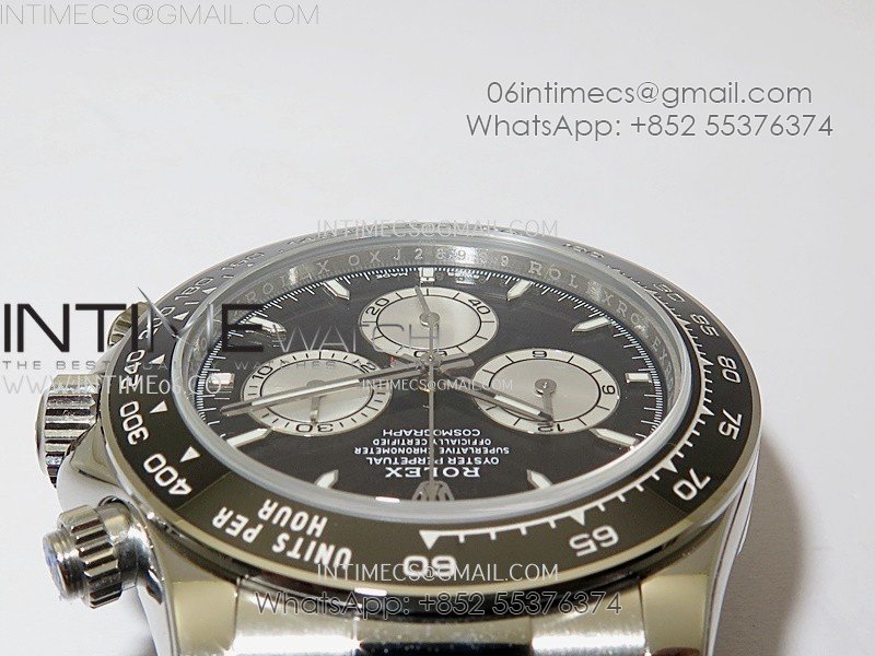 Bezel Black ceramic tachymeter bezel with steel wrapped