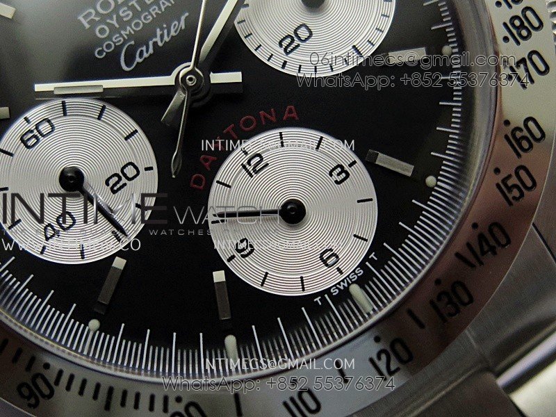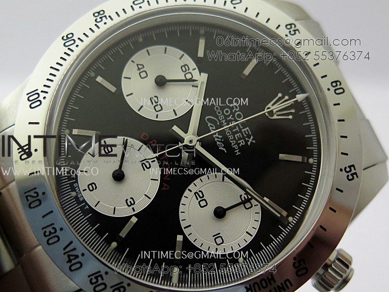 Daytona 6263 Style01 Cartier SS B12 Best Edition Black Dial White Subdials On SS Bracelet Venus 75