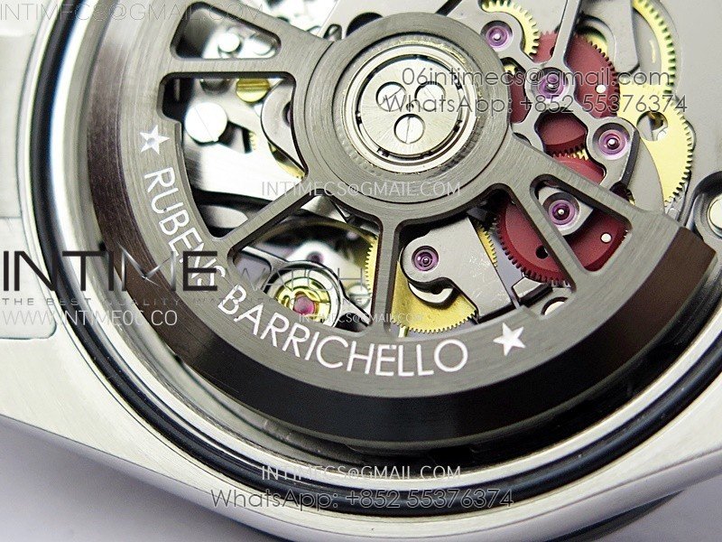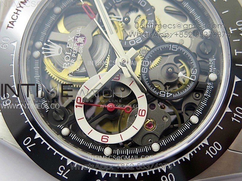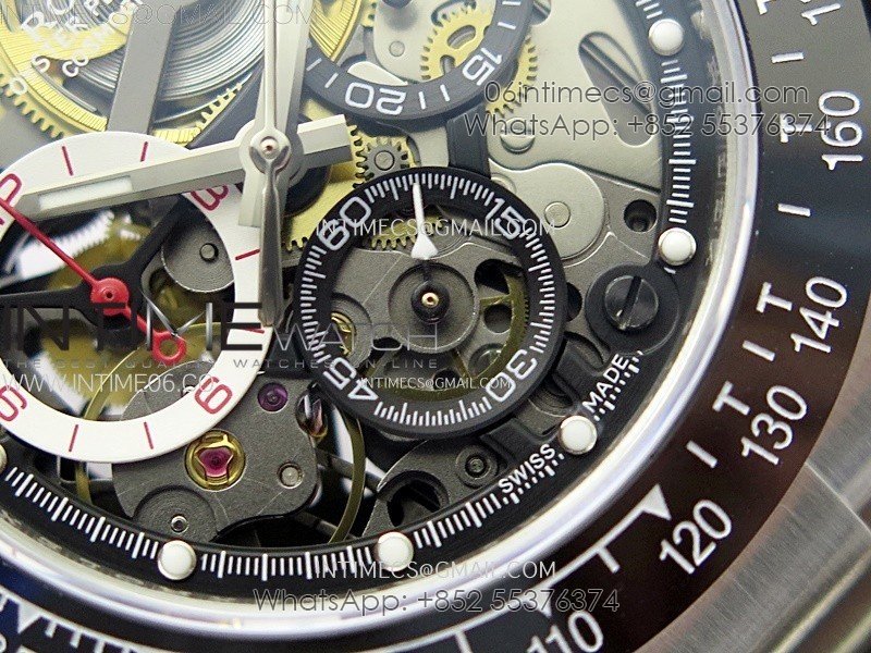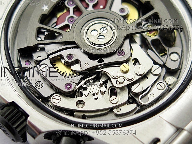 Movement    Custom made skeleton asian Super Clone4130 movement 28800vph, 1:1 replicated from the genuine movement, fully functional. Blue spring same as genuine.