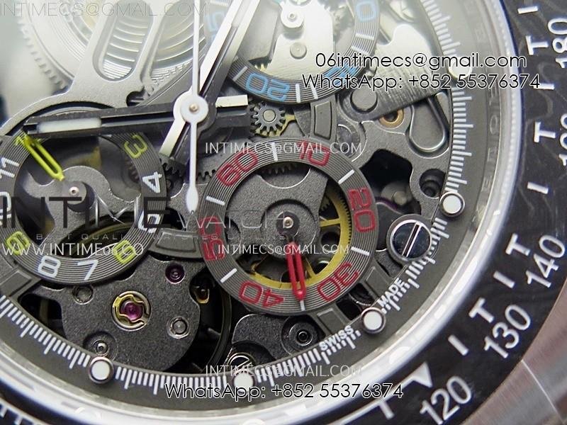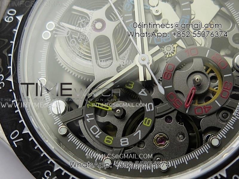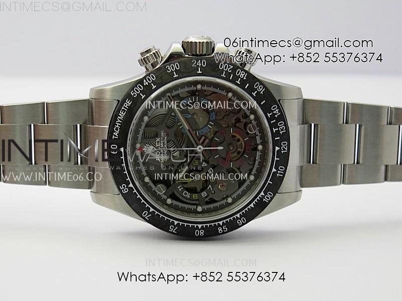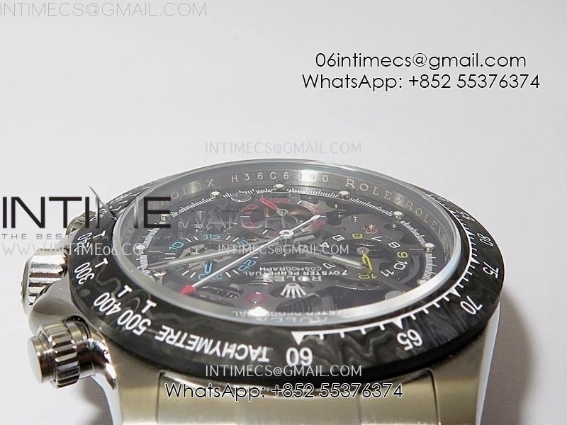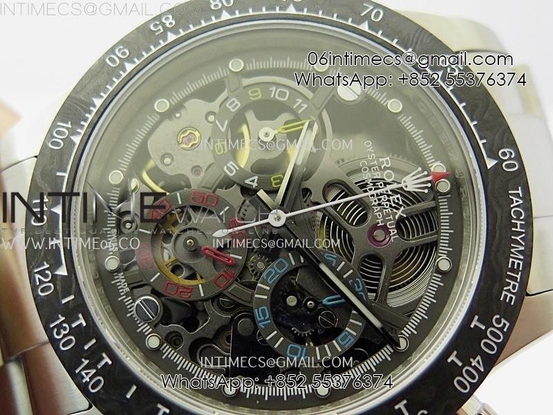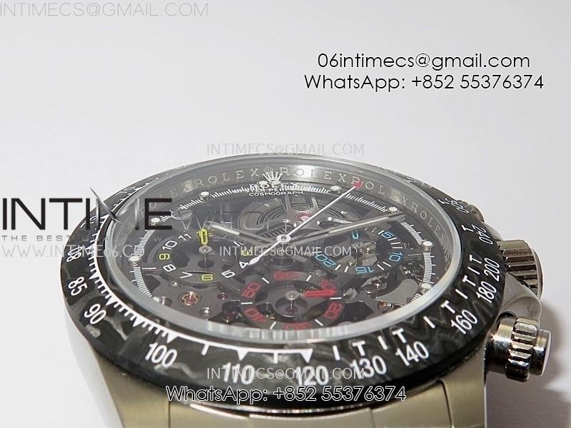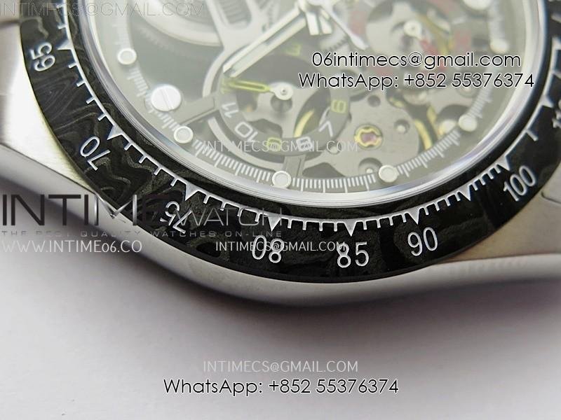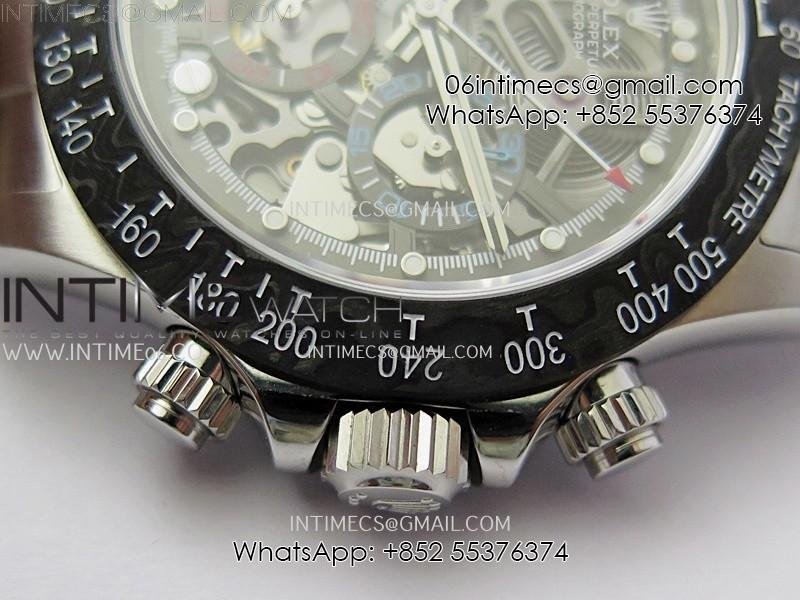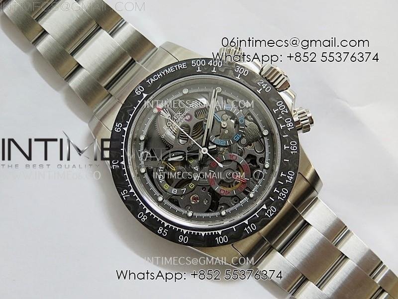 Daytona Cosmograph Carbon Bezel DIWF Best Edition Skeleton Dial on SS Oyster Bracelet SA4130