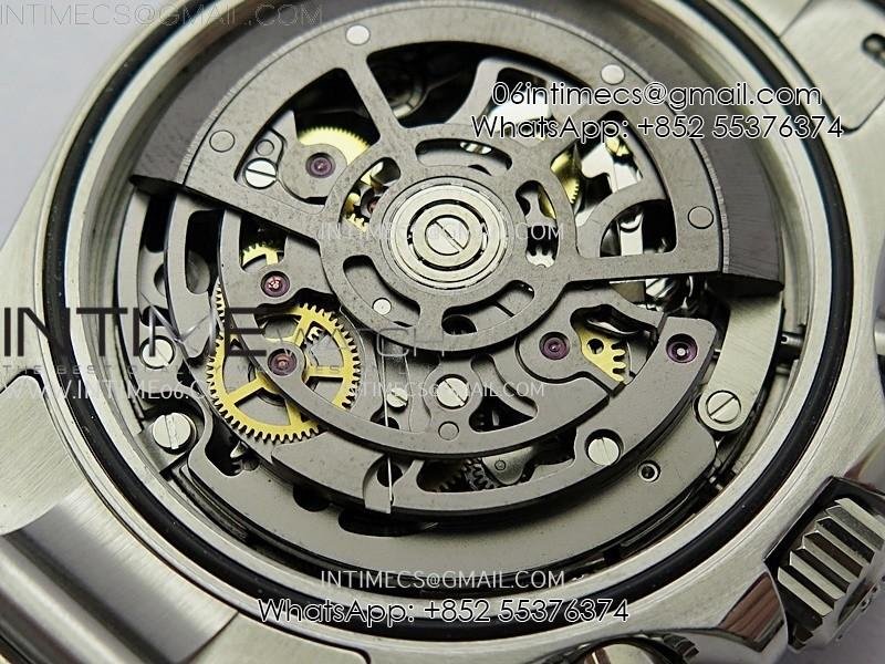Movement Custom made skeleton Asian Super Clone4130 movement 28800vph, 1:1 replicated from the genuine movement, fully functional. Blue spring same as genuine.