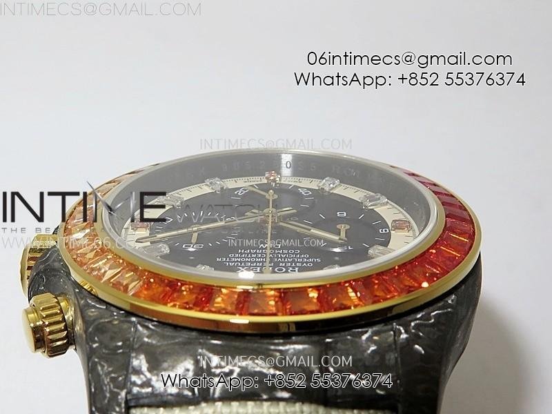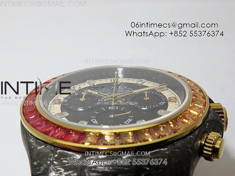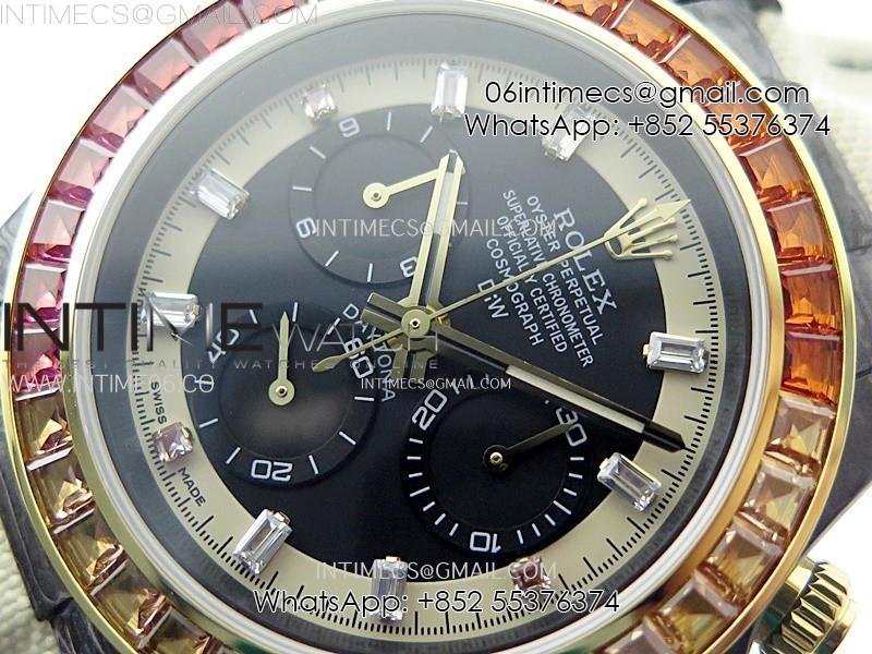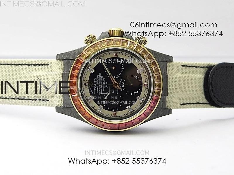Daytona DIW Black Carbon Case DIWF Edition Gray/White Dial Rainbow T Diamonds Bezel on White Nylon Strap A4130