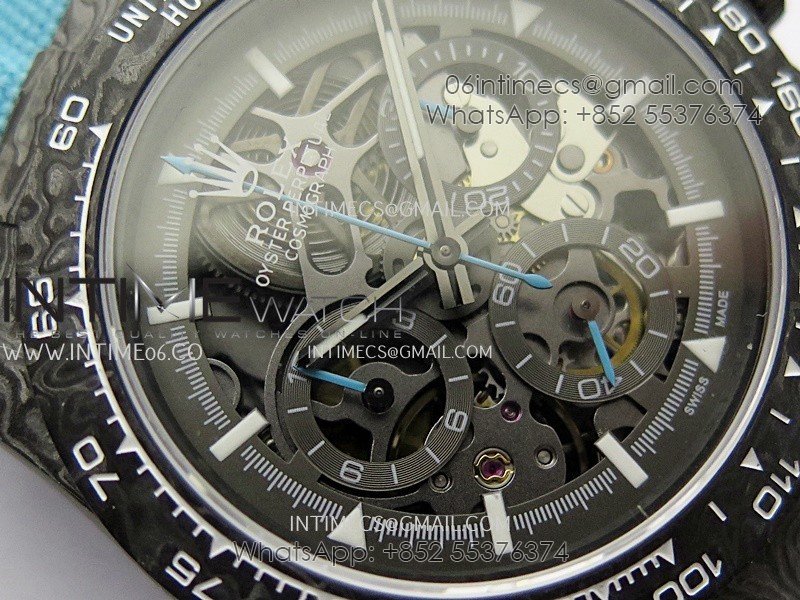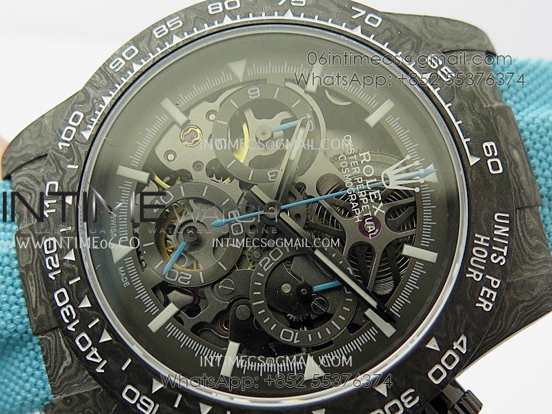 Daytona DIW Carbon Blue Second Hand DIWF Best Edition Skeleton Dial On Blue Nylon Strap SA4130
