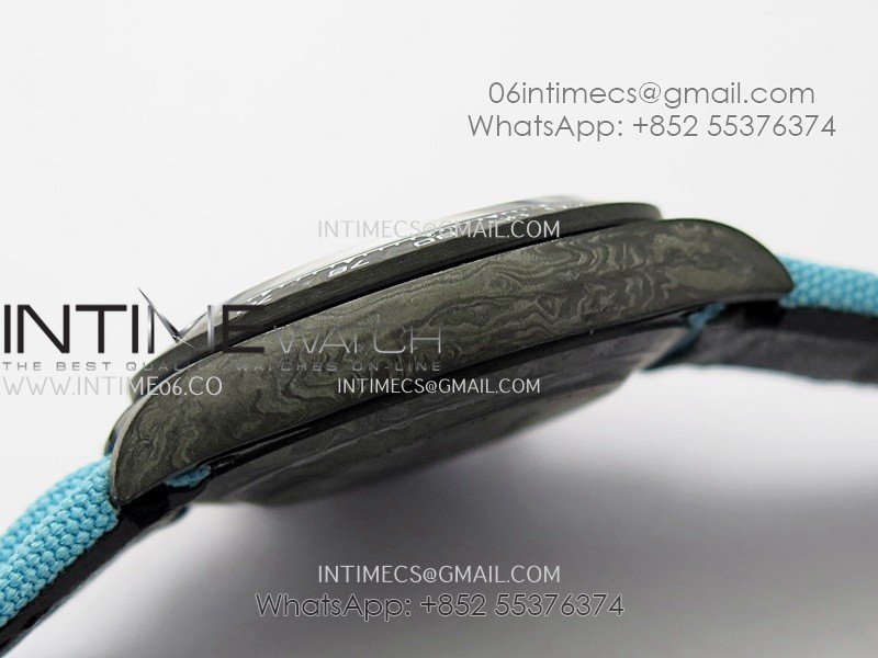 The watch is only around 47 gram weight, the forged carbon case is superlumed.