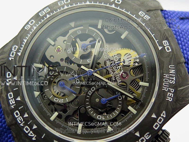 Daytona DIW Carbon Dark Blue Handset GETF Best Edition Skeleton Dial On Dark Blue Nylon Strap SA4130