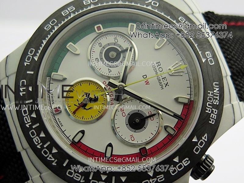 Daytona DIW Ferrari White Carbon SONIC 1:1 Best Edition White Dial On Black Nylon Strap SA4130