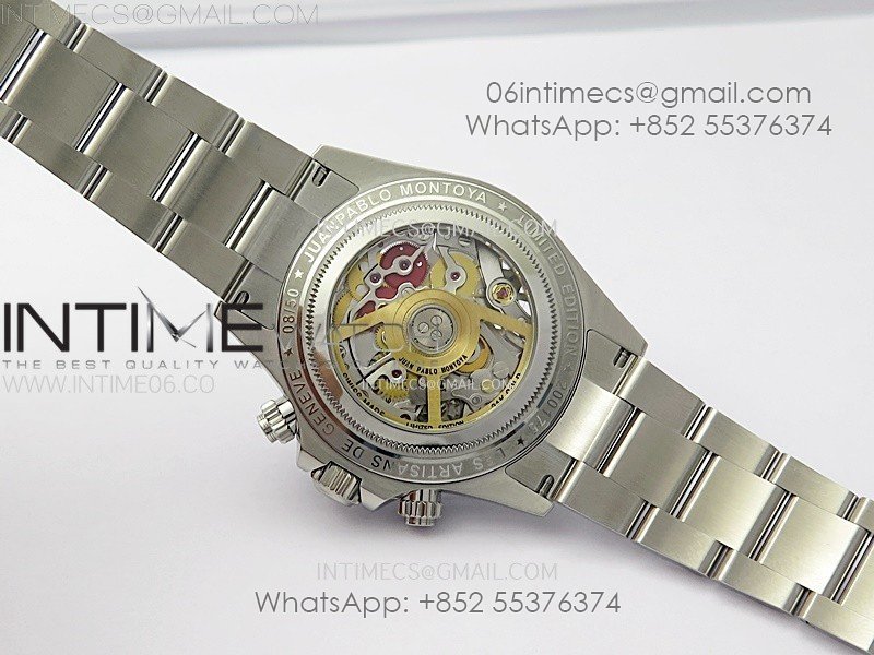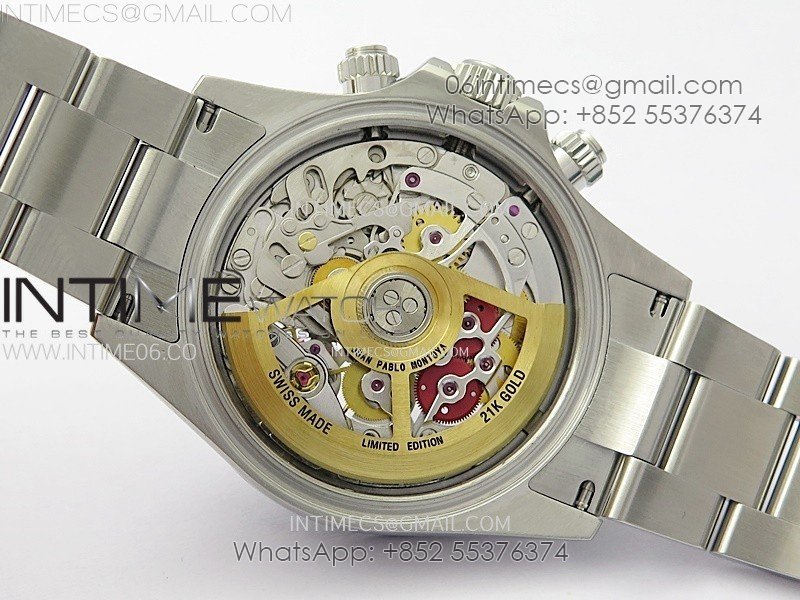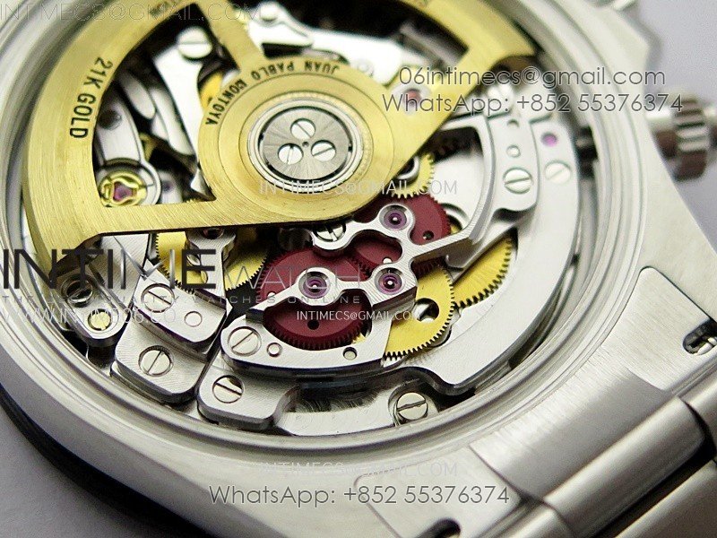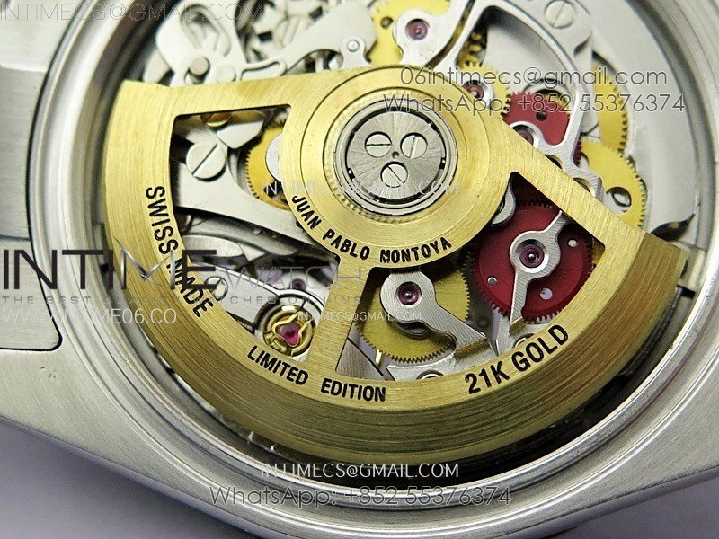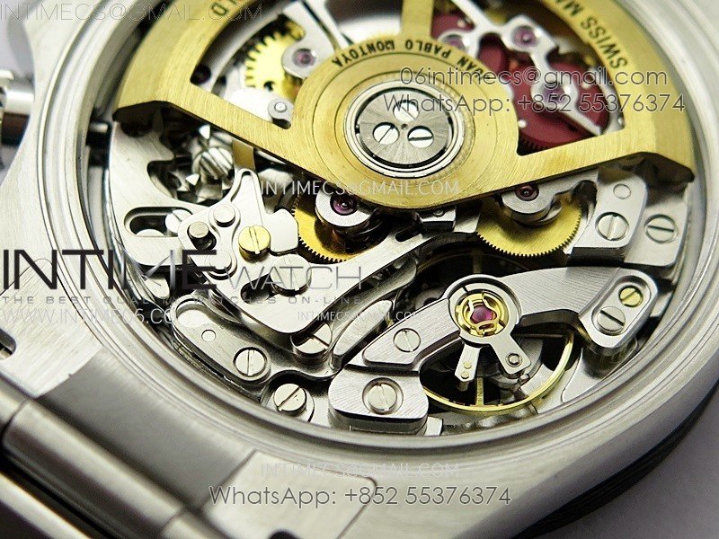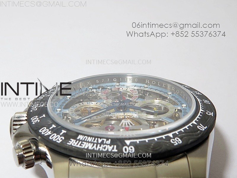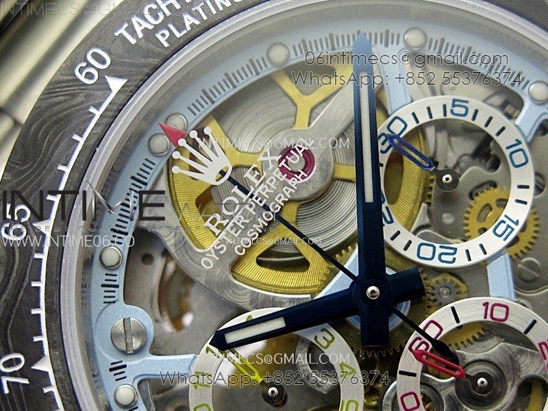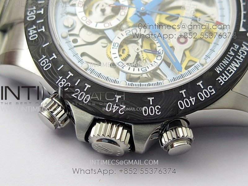Movement Custom made skeleton asian Super Clone4130 movement 28800vph, 1:1 replicated from the genuine movement, fully functional. Blue spring same as genuiine.