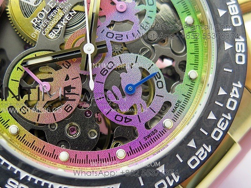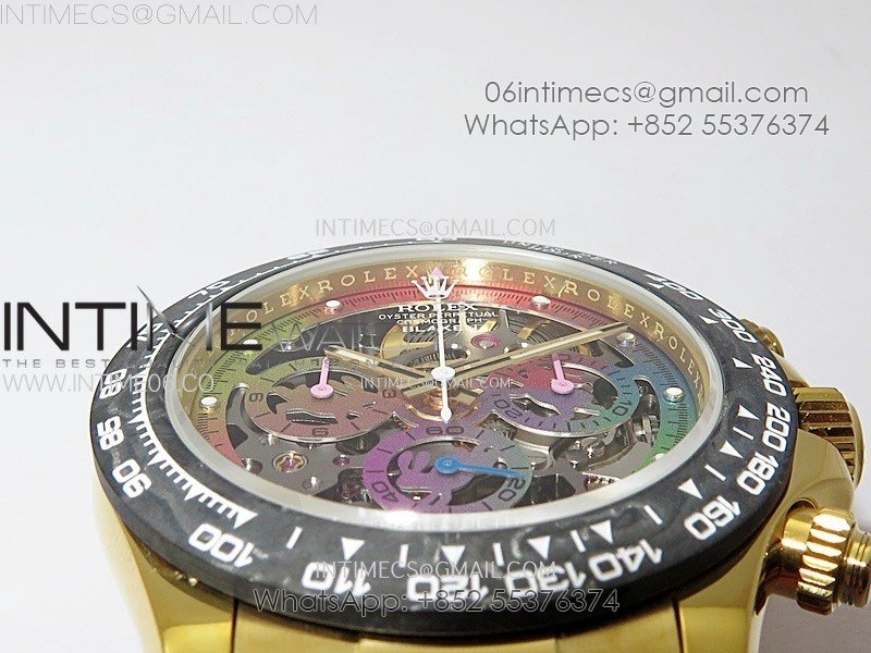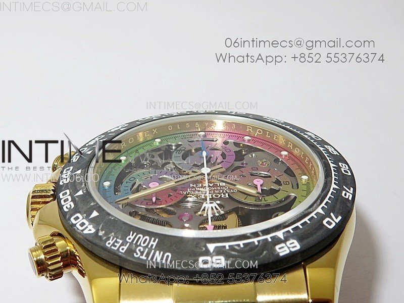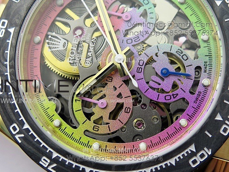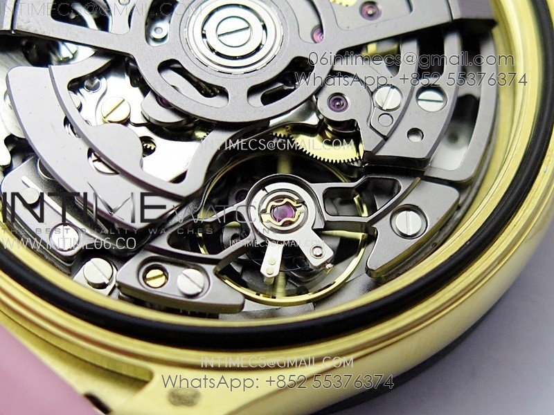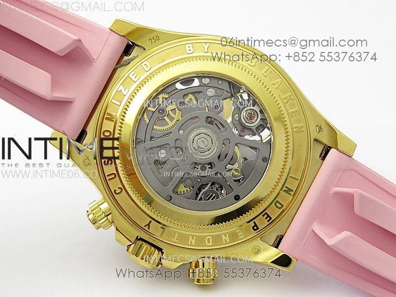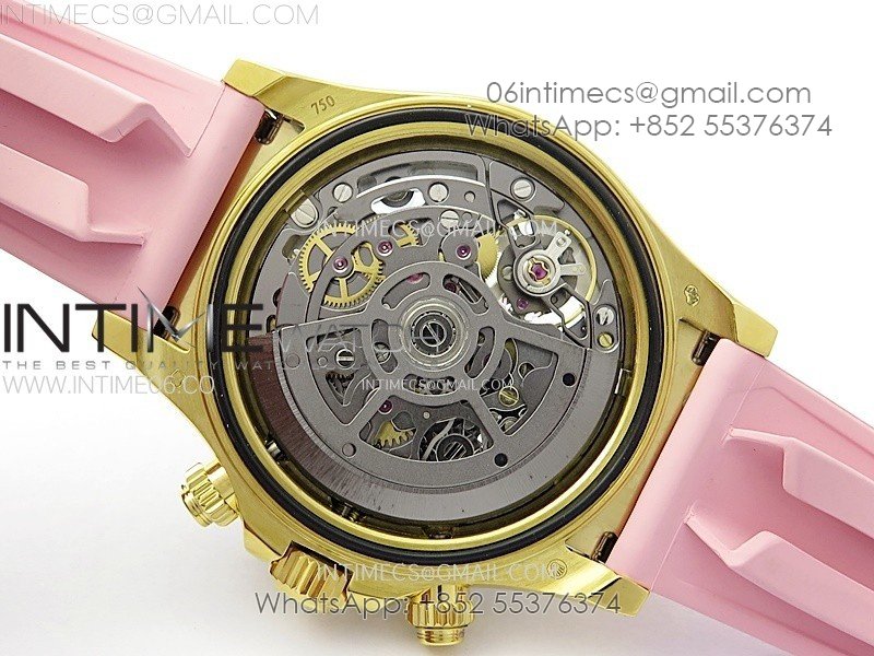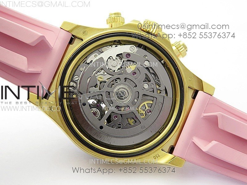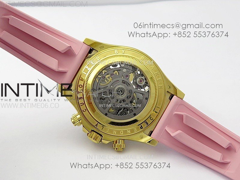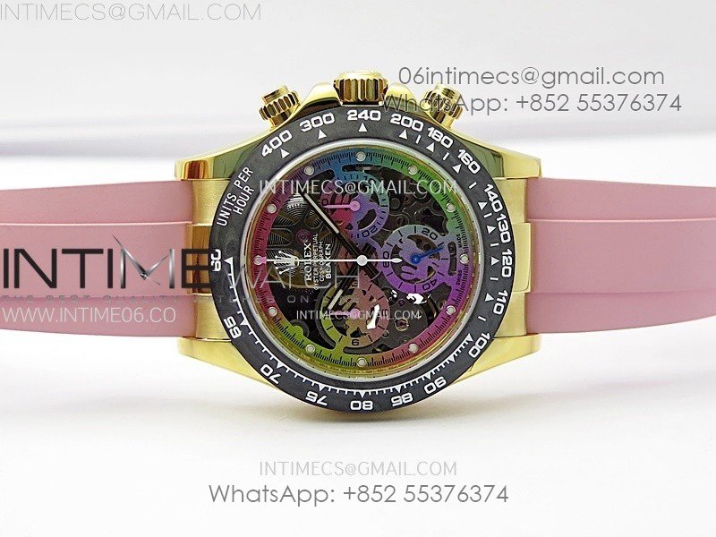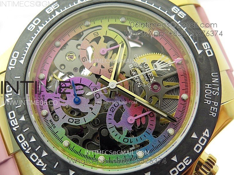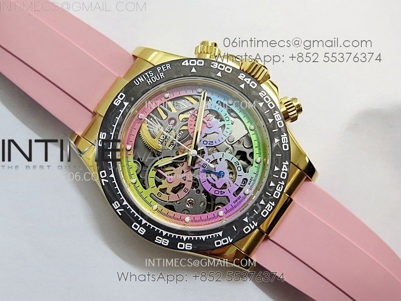 Daytona PVD Carbon Bezel YG GETF Best Blacken Skeleton Color Dial on Pink Rubber Strap SA4130