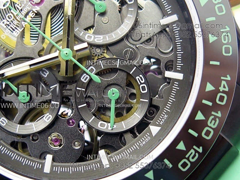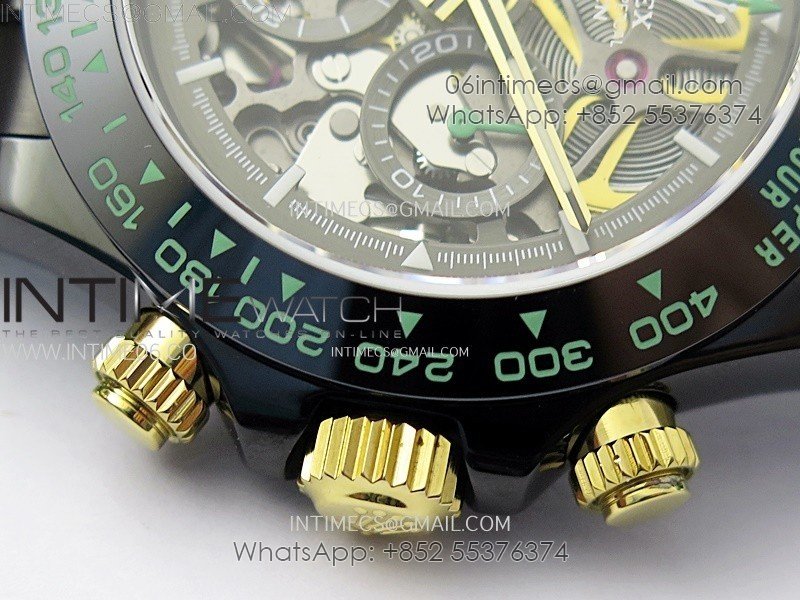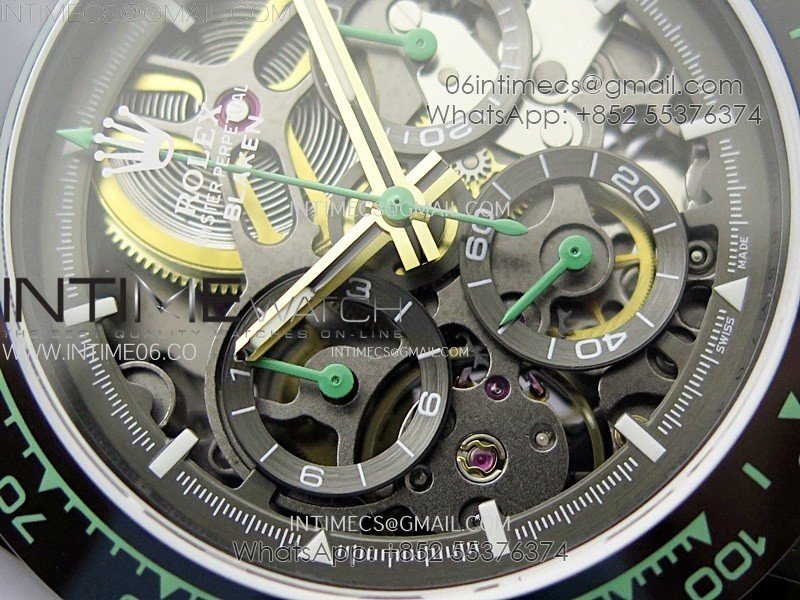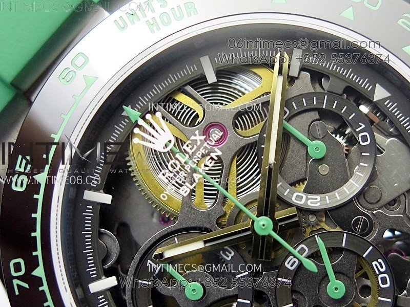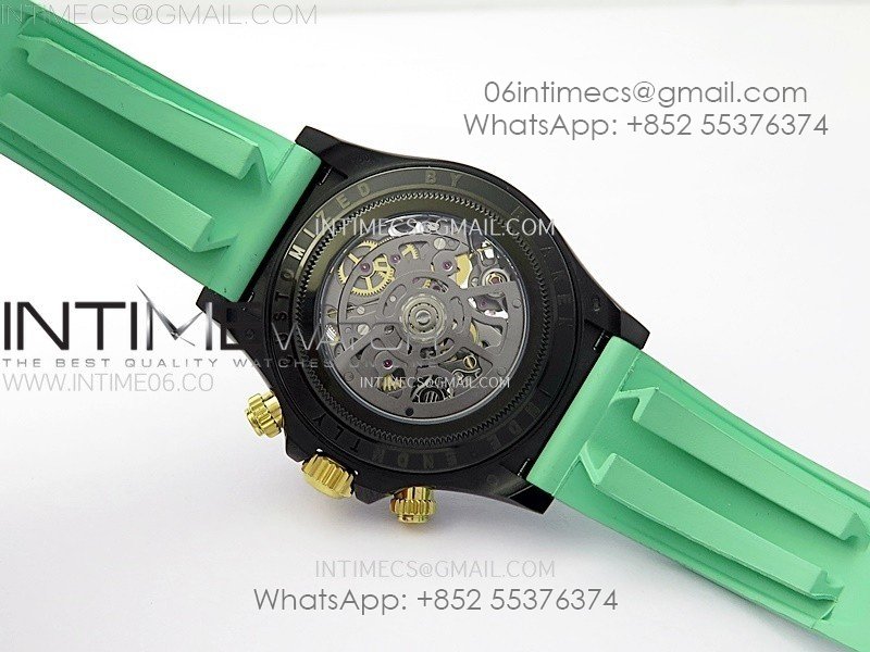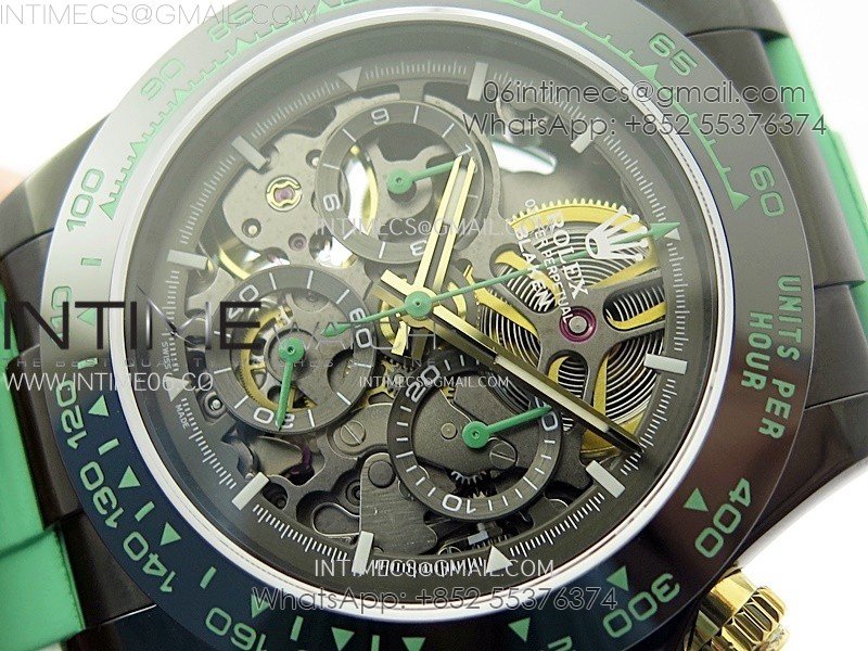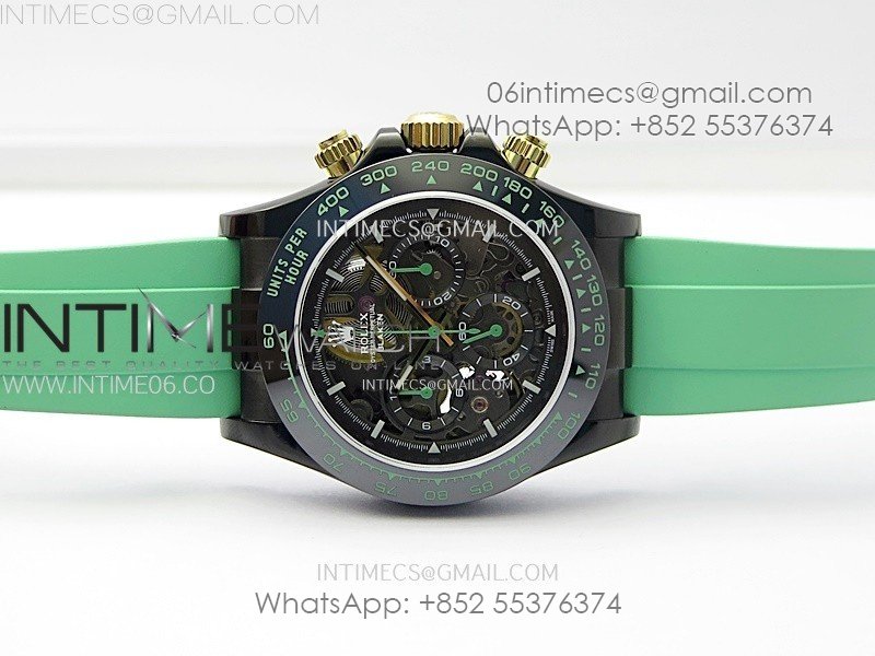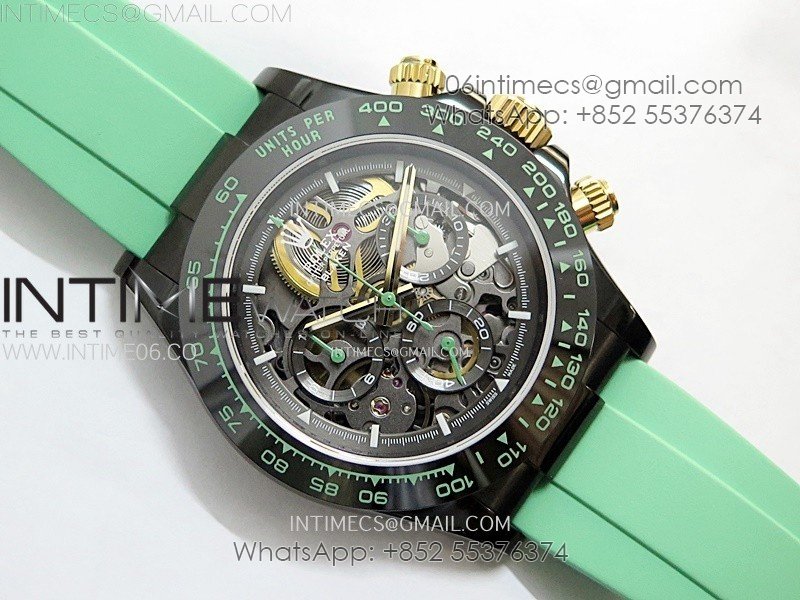 Daytona PVD Ceramic Bezel GETF Best Edition Skeleton Green Dial on Green Rubber Strap SA4130