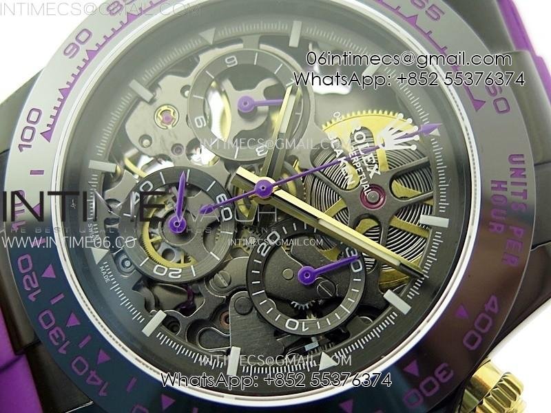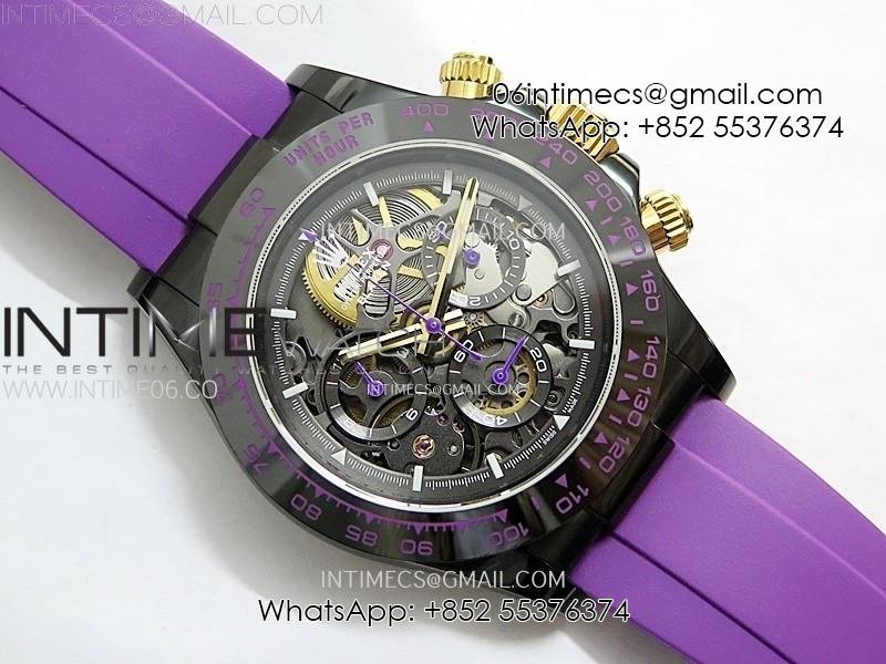 Daytona PVD Ceramic Bezel GETF Best Edition Skeleton Purple Dial on Purple Rubber Strap SA4130