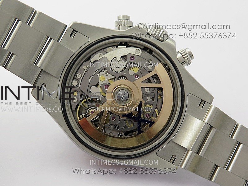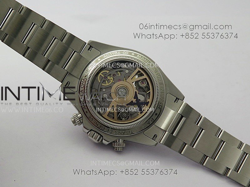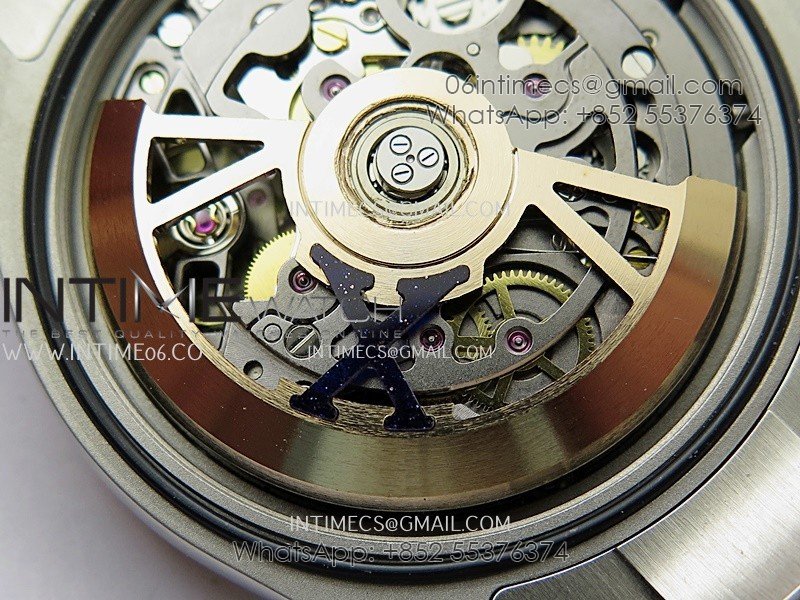 Movement Custom made skeleton Asian Super Clone4130 movement 28800vph, 1:1 replicated from the genuine movement, fully functional. Blue spring same as genuine.
