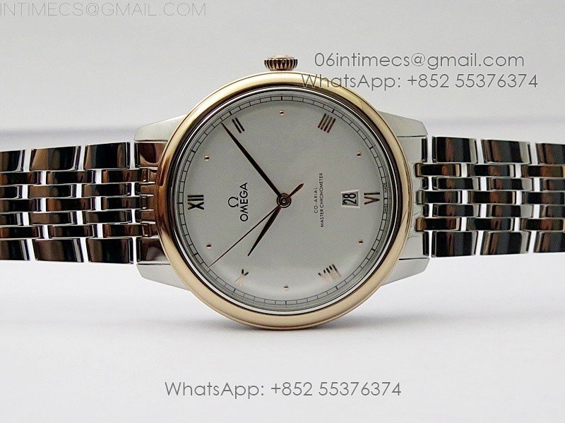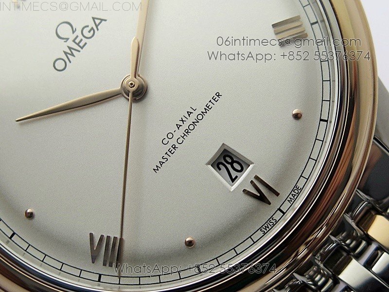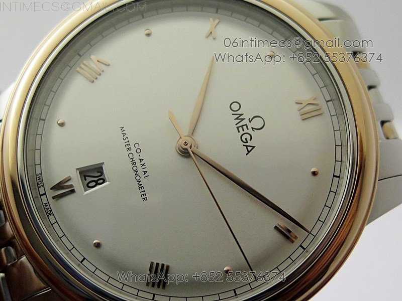 De Ville 40mm SS/RG GTF 1:1 Best Edition Silver Dial RG Markers on SS/RG Bracelet A8000(Free Leather Strap)
