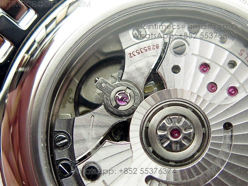 Movement Miyota 9015 automatic movement decorated to Omega 8800 movement, black balance wheel, Same black balance wheel with four axis wave shape as genuine.