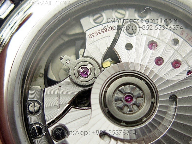 Movement Miyota 9015 automatic movement decorated to Omega 8800 movement, black balance wheel, Same black balance wheel with four axis wave shape as genuine.