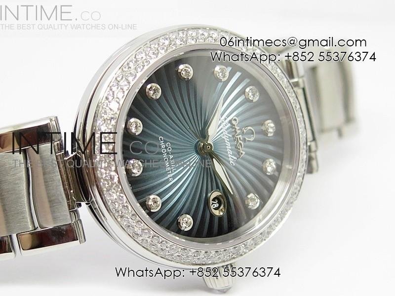 De Ville Lady SS Blue Textured Dial Diamonds Bezel on SS Bracelet SEIKO NH05A