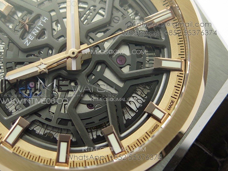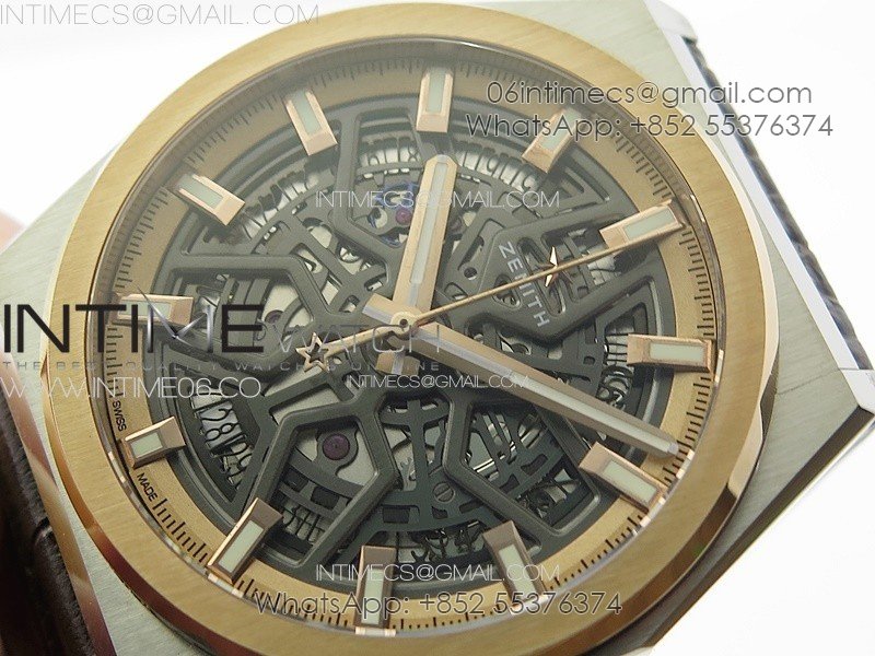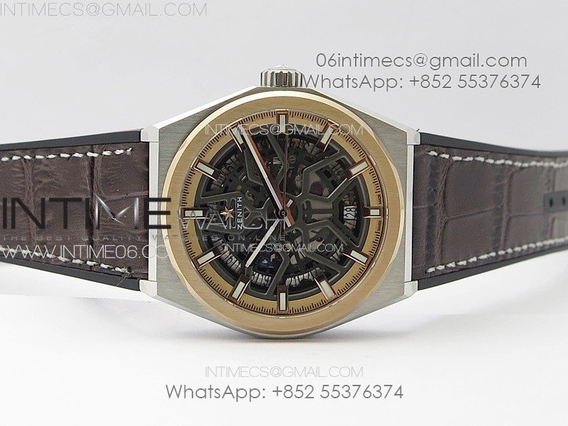Defy Classic LF 1:1 Best Edition RG Bezel Skeleton RG Dial on Brown Gummy Strap A2892 V2