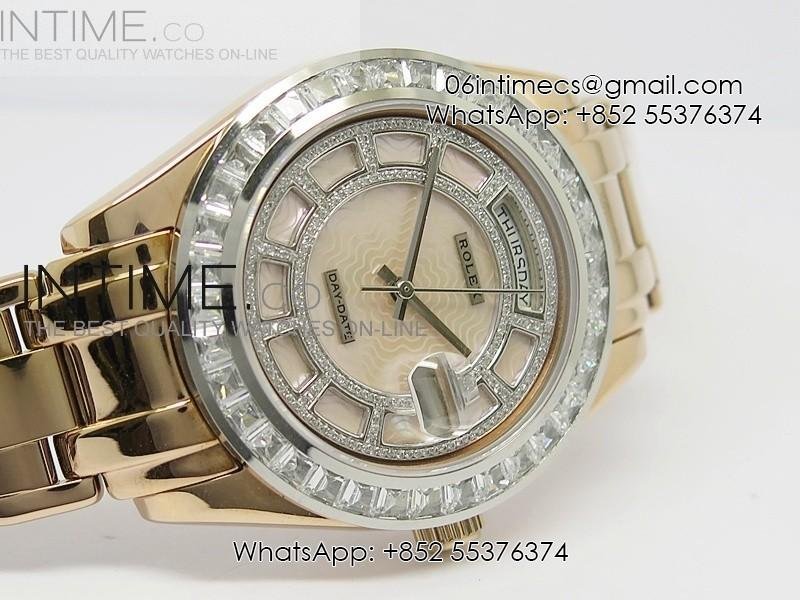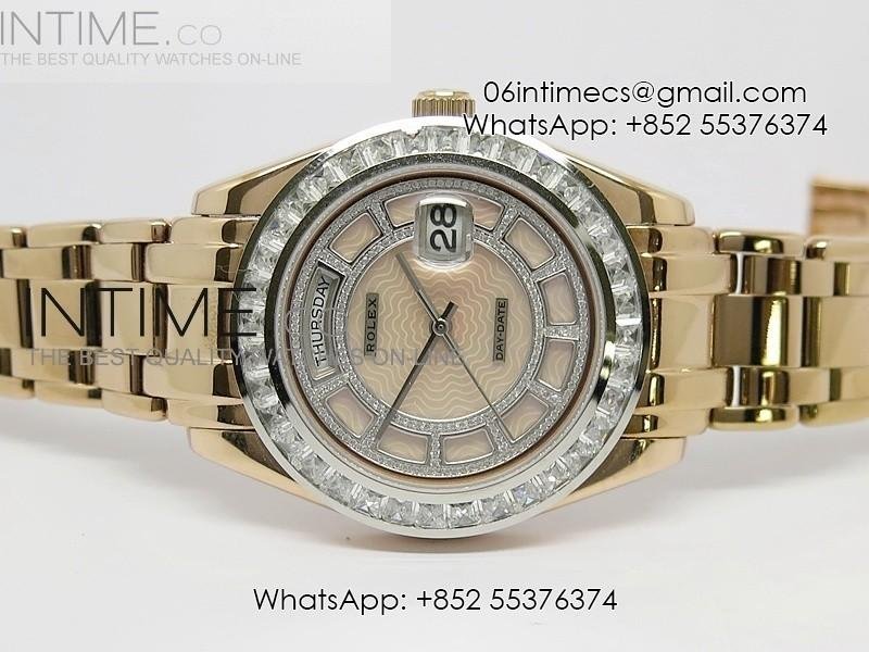 Diam Bez White Diamond/Rose Tier Rose Wavy Dial Asian 2813 28800bph