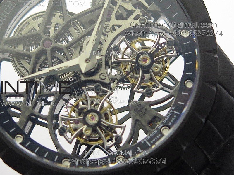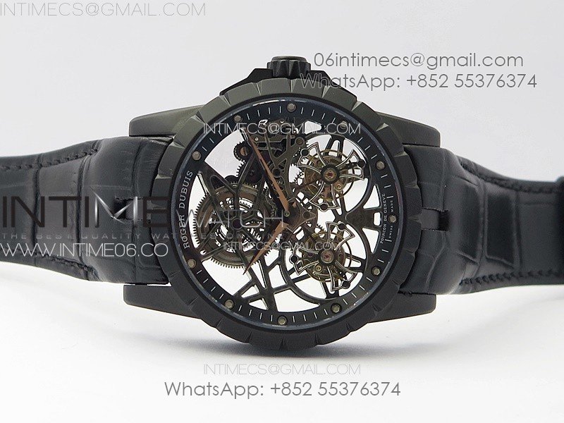 Excalibur Rddbex0820 DLC YSF Best Edition Skeleton Dial on Black Leather Strap Asian RD100 Double Tourbillon