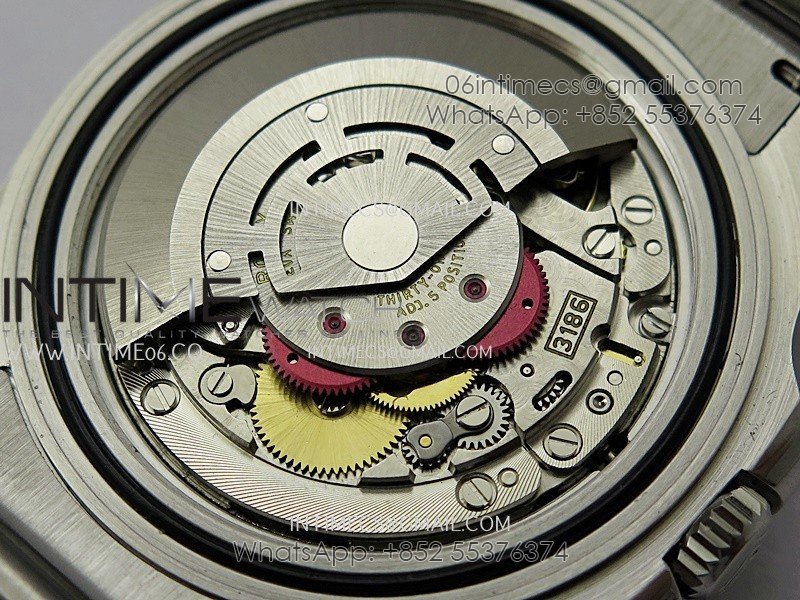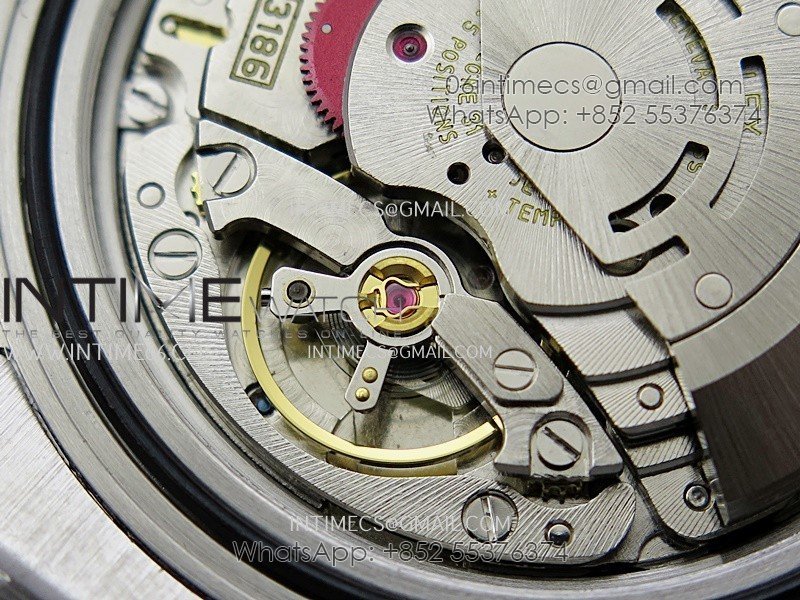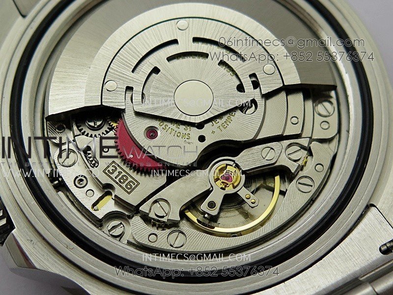 Asian Super Clone 3186 Automatic Movement at 28800 vph, Correct Handstack, self-winding, independent adjustable hour hand to set the date, same adjusting as genuine