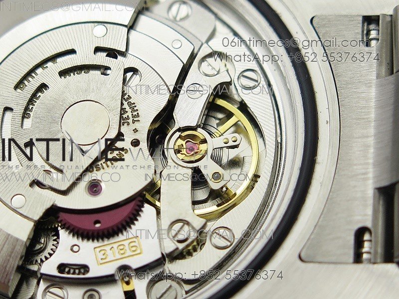 Movement Asian Super Clone VR3186 Automatic Movement at 28800 vph, Correct Handstack, self-winding, independent adjustable hour hand to set the date, same adjusting as genuine