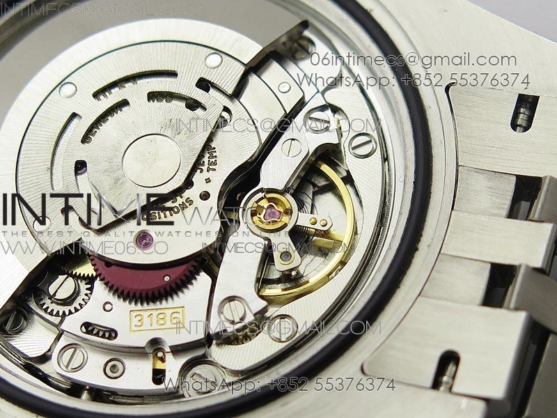 Movement Asian Super Clone VR3186 Automatic Movement at 28800 vph, Correct Handstack, self-winding, independent adjustable hour hand to set the date, same adjusting as genuine