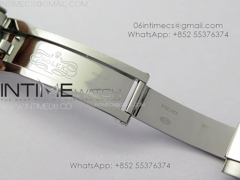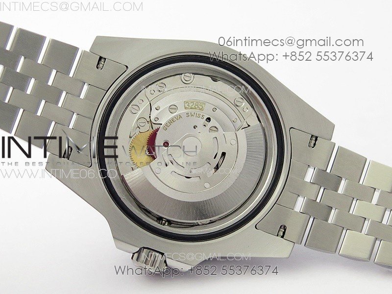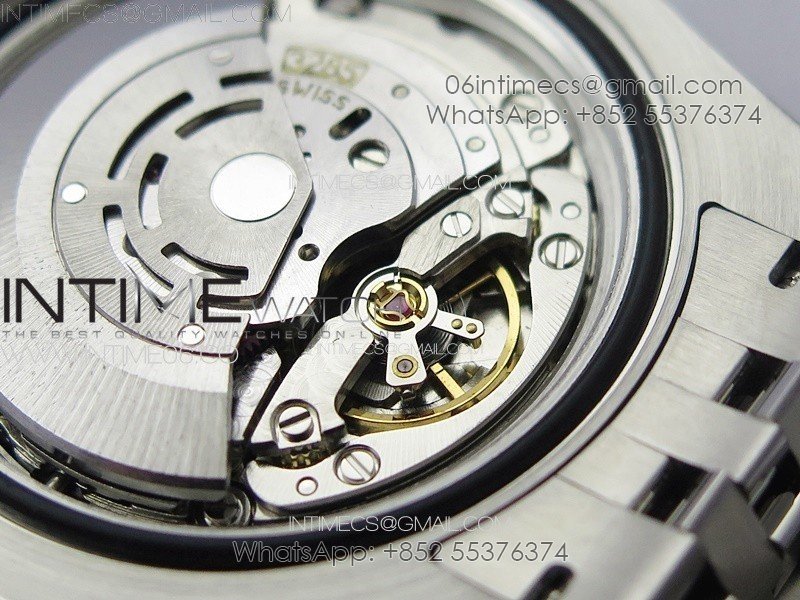 Movement Asian Super Clone 3285 Automatic Movement at 28800 vph, Correct Handstack, self-winding, independent adjustable hour hand to set the date, same adjusting as genuine