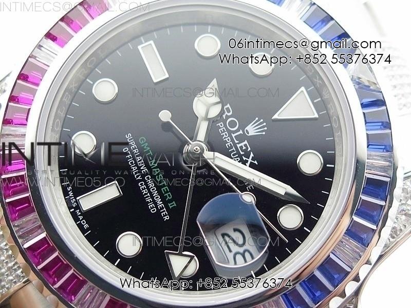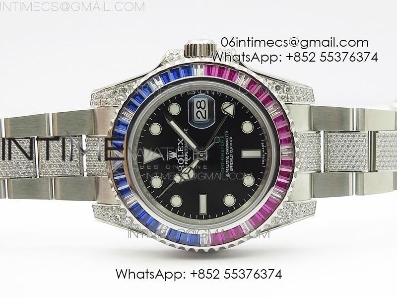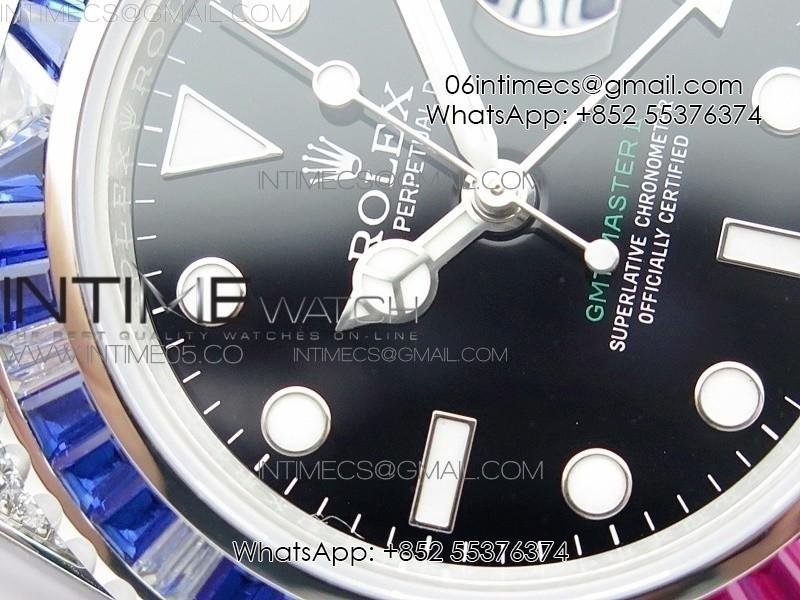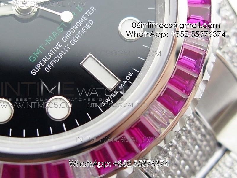 GMT Master II 126710 Red/Blue T Crystal VRF Best Edition Black Dial On SS/Paved Crystal Bracelet 3186 CHS