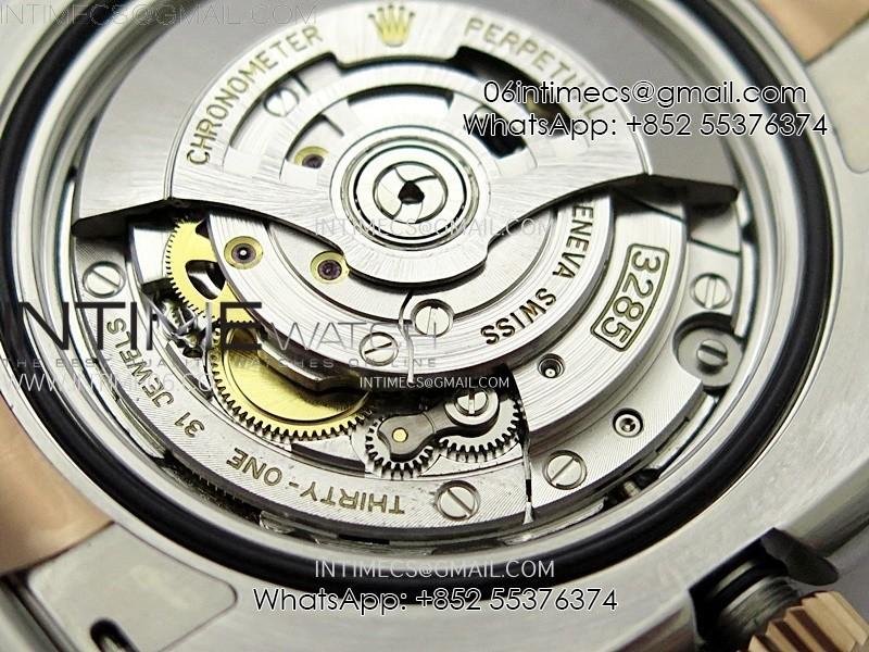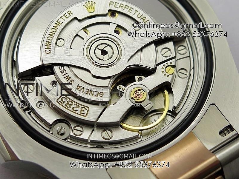 Movement Asian Super Clone VR 3285 Automatic Movement at 28800 vph, Correct Handstack, self-winding, independent adjustable hour hand to set the date, same adjusting as genuine
